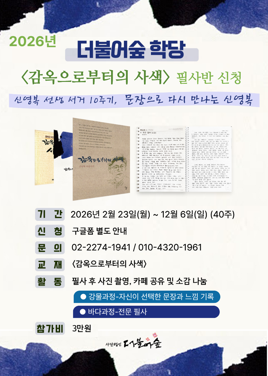 2026 더불어숲학당 「감옥으로부터의 사색」 필사과정 참가자 모집