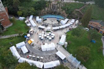 2024 제11회 학산마당극놀래의 축제전경 사진이다. 2024년 9월 28일 토요일에 수봉공원 인공폭포 앞 야외마당에서 진행되었다.