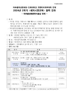 미추홀학산문화원 - 인하대학교 프런티어학부대학 세계시민성교육 미추홀학산문화원과 인하대학교 프런티어학부대학은 협약을 통해 2024년 2학기 세계시민성교육을 진행했습니다. 세계시민성교육 강좌를 통해 2번의 강의와 1번의 탐방을 진행하고 학생들의 자율 과제 수행이 이뤄졌습니다.