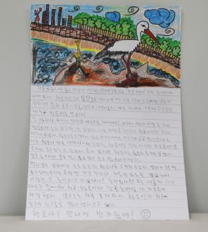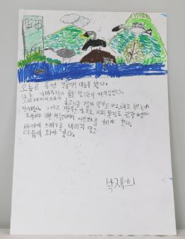 용현갯골에서 가마우지와 청다리도요를 본 모습을 그림으로 그렸다. 소중하고 귀한 새들을 위해 자연보호를 해야겠다는 다짐이 적혀있다. 이 그림은 제3회 학산백일장 '사람과 자연이 함께하는 생태적 삶을 꿈꾸며'에서 학익유수지(학익용현갯골)을 다녀와 그린 박재희의 '용현갯골을 다녀와서' 그림일기이며, 초등부 부문 동상을 수상한 작품이다. • 생산장소 : 인천광역시 미추홀구 • 그림개수 : 1점 • 그림크기 : 8절지 • 관련파일(비공개) 1. 응시표