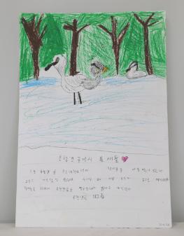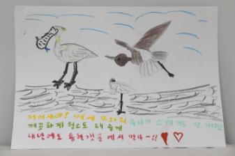 저어새가 먹이를 먹고, 날고, 자는 모습을 그림으로 그렸다. 이 그림은 제3회 학산백일장 '사람과 자연이 함께하는 생태적 삶을 꿈꾸며'에서 학익유수지(학익용현갯골)을 다녀와 그린 김민재의 '저어새야 내년에 또 봐' 그림일기이며, 초등부 부문 동상을 수상한 작품이다. • 생산장소 : 인천광역시 미추홀구 • 그림개수 : 1점 • 그림크기 : 8절지 • 관련파일(비공개) 1. 응시표