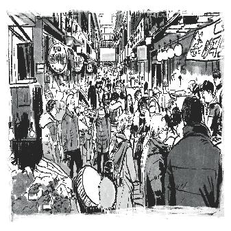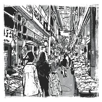 신기시장을 이용하는 외국인 관광객 드로잉 미추홀살아지다1 안녕? 신기촌 사람들에 수록