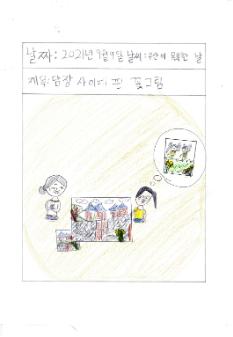 나에게 위로가 되는 것들로 4가지를 꼽았다. 맛있는 간식과 음식들, 여러가지 활동을 할 수 있는 게임, 유튜브에서 듣기 좋은 노래를 들어서 위로를 푸는 것, 그리고 언제나 사랑해주시고 잘해주시는 부모님이 제일 위로가 된다는 내용이다. 그림은 위로가 되는 것들을 쌓은 이미지로 나타냈다. 이 그림은 제2회 학산백일장 '미추홀, 삶을 위로하다'에서 내게 위로가 되는 것들이라는 주제로 그린 오영석의 그림일기이며, 초등부 부문 동상을 수상한 작품이다. • 생산장소 : 인천광역시 미추홀구 • 그림개수 : 2점 • 그림크기 : 8절지 • 관련파일(비공개) 1) 응시표