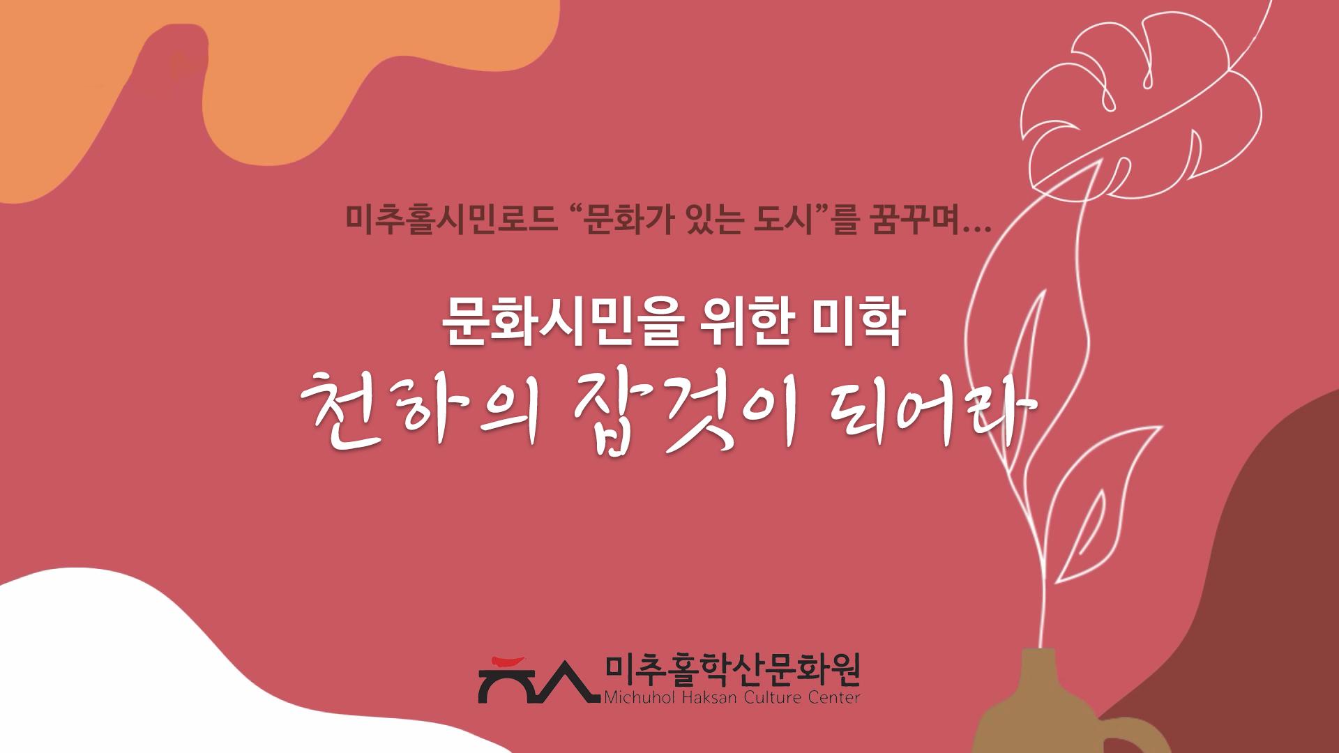 <미추홀 시민로드> 미추홀 근, 현대 역사의 개괄 및 마을 공 인문지리적 접근을 통해 현재의 미추홀을 이해하고, 지역의 미래를 고민해 볼 수 있는 시민강좌입니다. 더불어 지역을 이해하기 위한 인문적 기반(미학, 생태자원 등)을 쌓아갈 수 있도록 합니다.