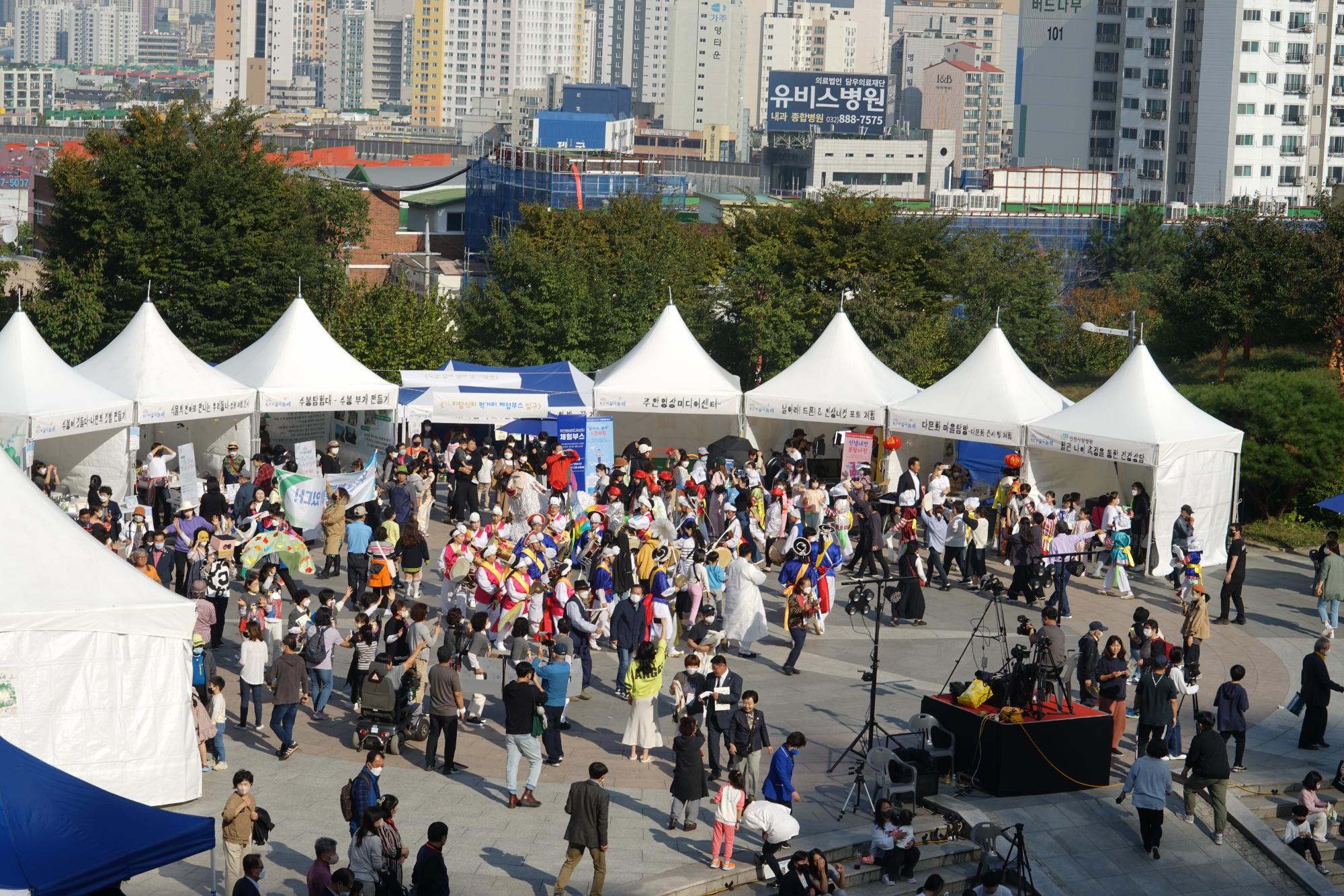 시민창작예술축제 제8회 학산마당극놀래 '미추홀, 오래된 미래를 꿈꾸며' 학산마당극놀래는 주민과 예술가, 지역의 공동체가 삶의 이야기를 담은 작품을 공동창작하여 이웃과 나누는, 주민이 만들고 함께 즐기는 시민마당극 축제입니다. 축제 개요 주최·주관 미추홀학산문화원 후원 인천광역시, 인천광역시 미추홀구 주제 미추홀, 오래된 미래를 꿈꾸며 일시 2021년 12월 2일(목) ~ 4일(토) 장소 미추홀학산문화원 유튜브 채널 주제 미추홀, 오래된 미래를 꿈꾸며 인원 총 6,160명 (공연 참여 296명, 관객 5,298명, 온라인서포터즈 172명, 연계프로그램 394명) 협력기관 및 단체 (사)학산나눔재단, 인천광역시시각장애인복지관, 미추홀구가족센터, 미추홀구학교밖청소년지원센터 꿈드림, 동 행정복지센터(숭의4동, 용현1·4동, 학익1동, 도화2·3동, 문학동), 학익1동 주민자치회, 문학동 주민자치회, 공연단체 위로, 극단 덩이줄기, 극단 미추홀, 극단 상상이상, 극단 아트팩토리, 기찻길옆작은학교, 꿈꾸는문화놀이터 뜻, 얄라, 꿈 놀이터 BTB 공방, 도화신동아파밀리에입대위, (사)인천민예총, 산이골 마을학교, 삼촌네사진관, 석바위시장 상인회, 수봉정류장, 연수구 무용협회, 연행집단 사이, 은율탈춤보존회, 인더로컬 협동조합, 인천 자바르떼, 인천맘톡, 예그리나 마을교육공동체, 예술공작소 웃다짓다, 창작집단 시앤, 풍물패 더늠, 연수구 작품제작 사진제공-고려인 문화관 결, 너머인천고려마을, 인천 저어새 네트워크, 인천in, 모모하시니의 만물작업, 지안 커뮤니케이션, 코스모픽쳐스, 트루오디오, 프로젝트 비비 마당1. 아이들이 자라나는 마을 : 마을의 이야기 12월 2일 (목) [축제 오프닝 및 축제 개막선언] [내외빈 축사] [개막공연] 은율탈춤보존회 '우리도 탈춤으로 놀래!' [개막영상] 학산어린이노래단 '우리의 미래' [미추홀구] 예그리나 '함께 자라는, 돌봄÷' [인천-강화군] 산이골마을학교 '마을이 키우는 아이들' [인천-동구] 기찻길옆작은학교 '그림책과 손잡고1 - 당당한 나, 당당한 우리' [미추홀구] 어벤져수봉 '수봉산과 골목길, 숨은 이야기 찾기' [인천-중구] 인더로컬 '자유공원, 오래된 삶을 품다' [미추홀구] 아름다운 비행 '즐거운 나의 집' 마당2. 더불어 다 같이 : 다양성, 인권, 함께 사는 삶을 위하여 12월 3일(금) [미추홀구] 청로벌 '시선' [인천-남동구] 꿈꾸는 문화놀이터 뜻 '꿈이라는 꽃을 피우다' [인천-동구] 기찻길옆작은학교 '그림책과 손잡고2' [미추홀구] 마냥 '흰 지팡이 사람들' [미추홀구] 글로벌 '마음속에 담아둔 여행' [미추홀구] 한결 '우리네를 비춰주네' [인천-연수구] 연수구 무용협회 'Life' 마당3. 지속 가능한 삶은 꿈꾸며 : 미추홀, 생태적 자원의 회복 12월 4일(토) [미추홀구] 어수선 '가출소동, 수다가 수(手)다' [인천-계양구] 분해정원 '버리기 전에 생각했나요?' [인천-동구] 기찻길옆아이들 '그림책과 손잡고3' [미추홀구] 바모스 '모여봐요, 문학의 숲' [인천-옹진군] 문갑도이야기 '그 섬에 사람이 산다' [인천-서구] 신현동 회화나무마을 이야기 '마을을 담는 공간' [미추홀구] 학나래 '학익에서, 바다로' [폐막공연] (사)인천민예총 '인천! 평화와 상생의 비나리' [폐막선언] ▷더 많은 이야기는 아래 연결된 기록물을 확인하세요.