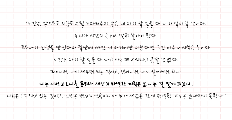 코로나로 인해 변한 여러분의 삶은 어떠한가요?