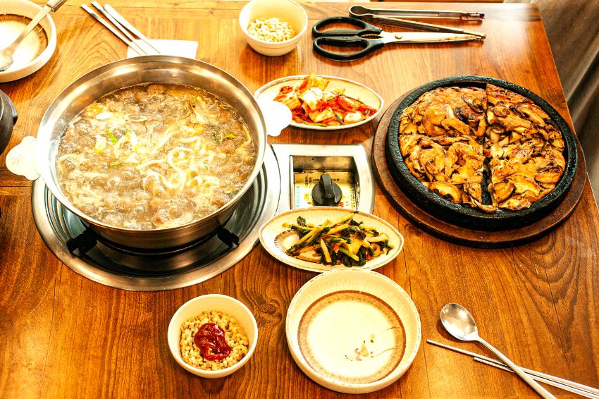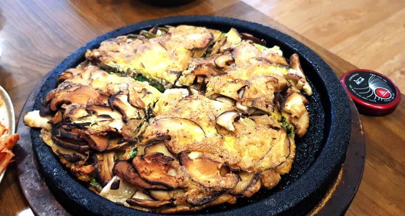 식당의 시그니처는 옹심이와 버섯파전, 버섯파전은 표고버섯이 많이 들어가 웰빙음식으로 자리잡음.