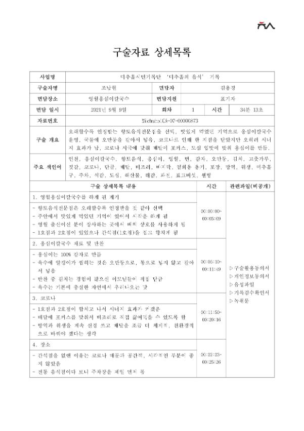 오랜 시간 미추홀구에 터를 잡고 살아온 사람의 음식 이야기를 기록하기 위해 구술인터뷰 진행