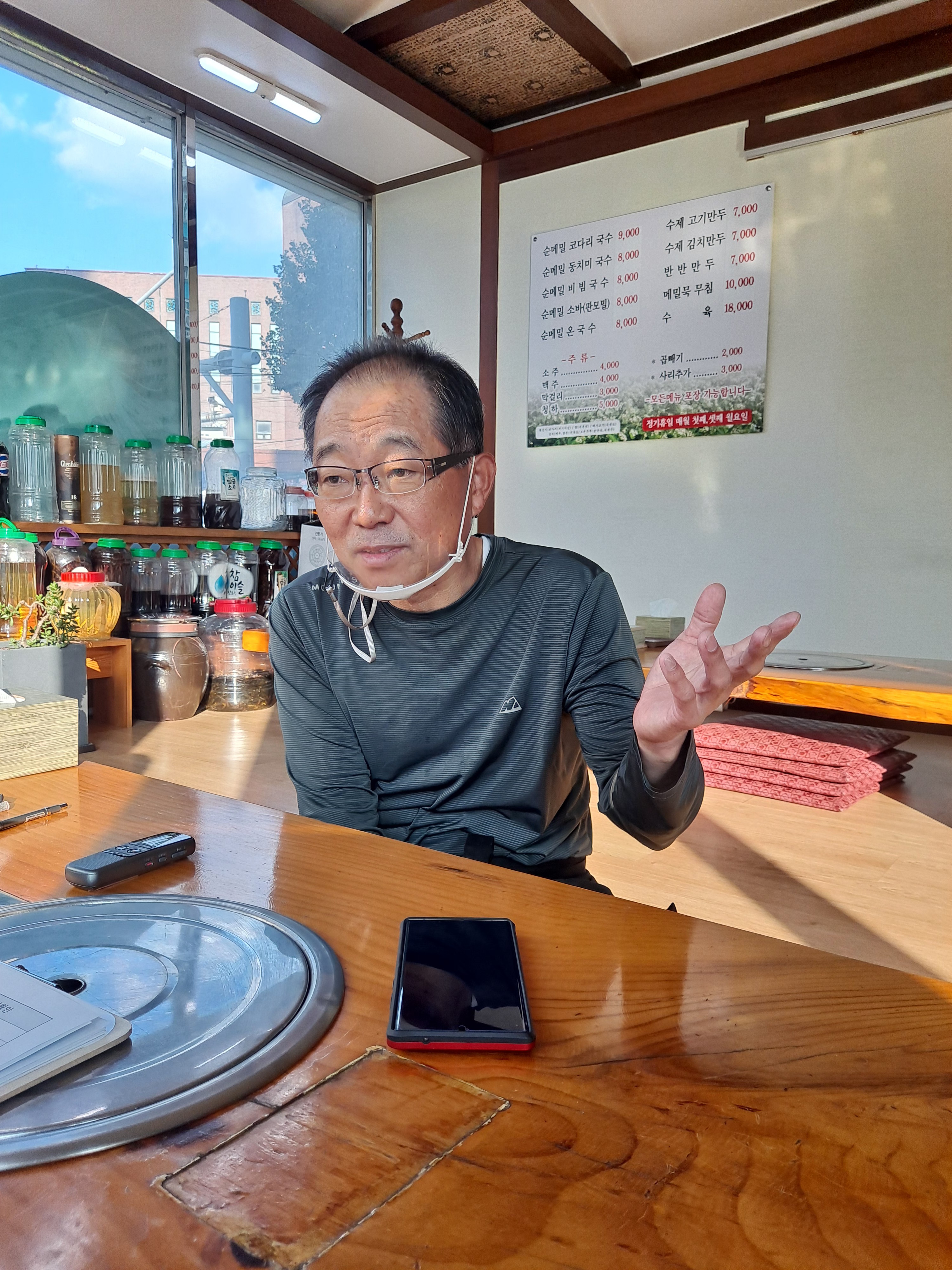 일본에서 메밀 100%로 만드는 기술을 배워온 매제한테 배움, 건축일을 하다 메밀집을 하게 됨, 메밀은 현재 몽골산과 미국산 사용, 반찬은 원재료만 사서 직접 만듦, 일본에서 비싼 값을 들이고 반죽기를 직수입함, 손님들이 메밀 100%라는 것을 믿지 못했지만 시간이 지날수록 인정하고 많이 찾아오심, 사계절 찾는 식당이 되었으면 함.