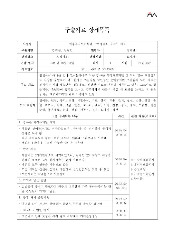 오랜 시간 미추홀구에 터를 잡고 살아온 사람의 음식 이야기를 기록하기 위해 구술인터뷰 진행