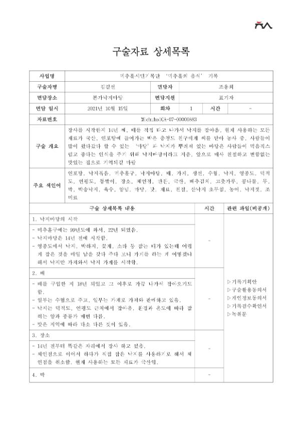오랜 시간 미추홀구에 터를 잡고 살아온 사람의 음식 이야기를 기록하기 위해 구술인터뷰 진행