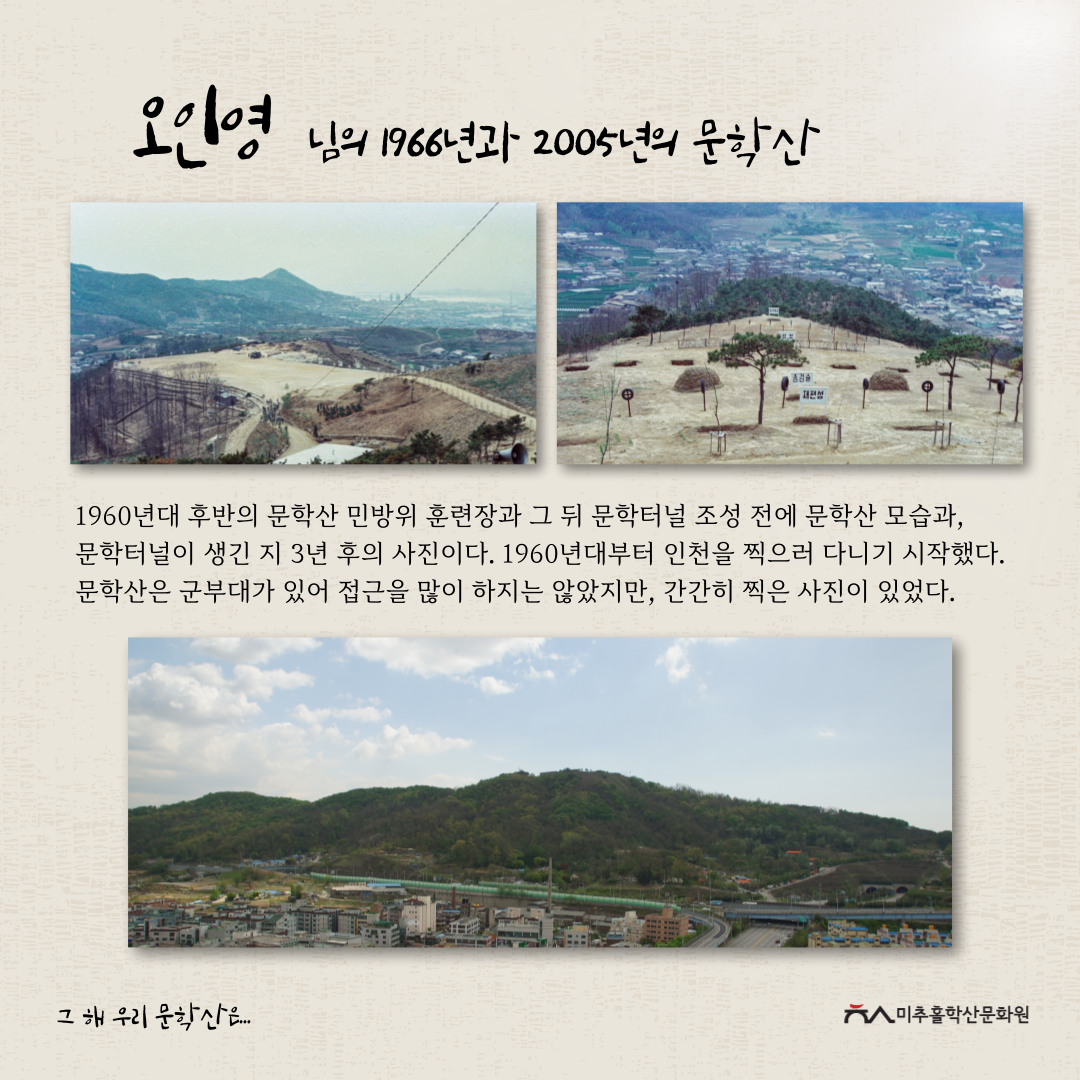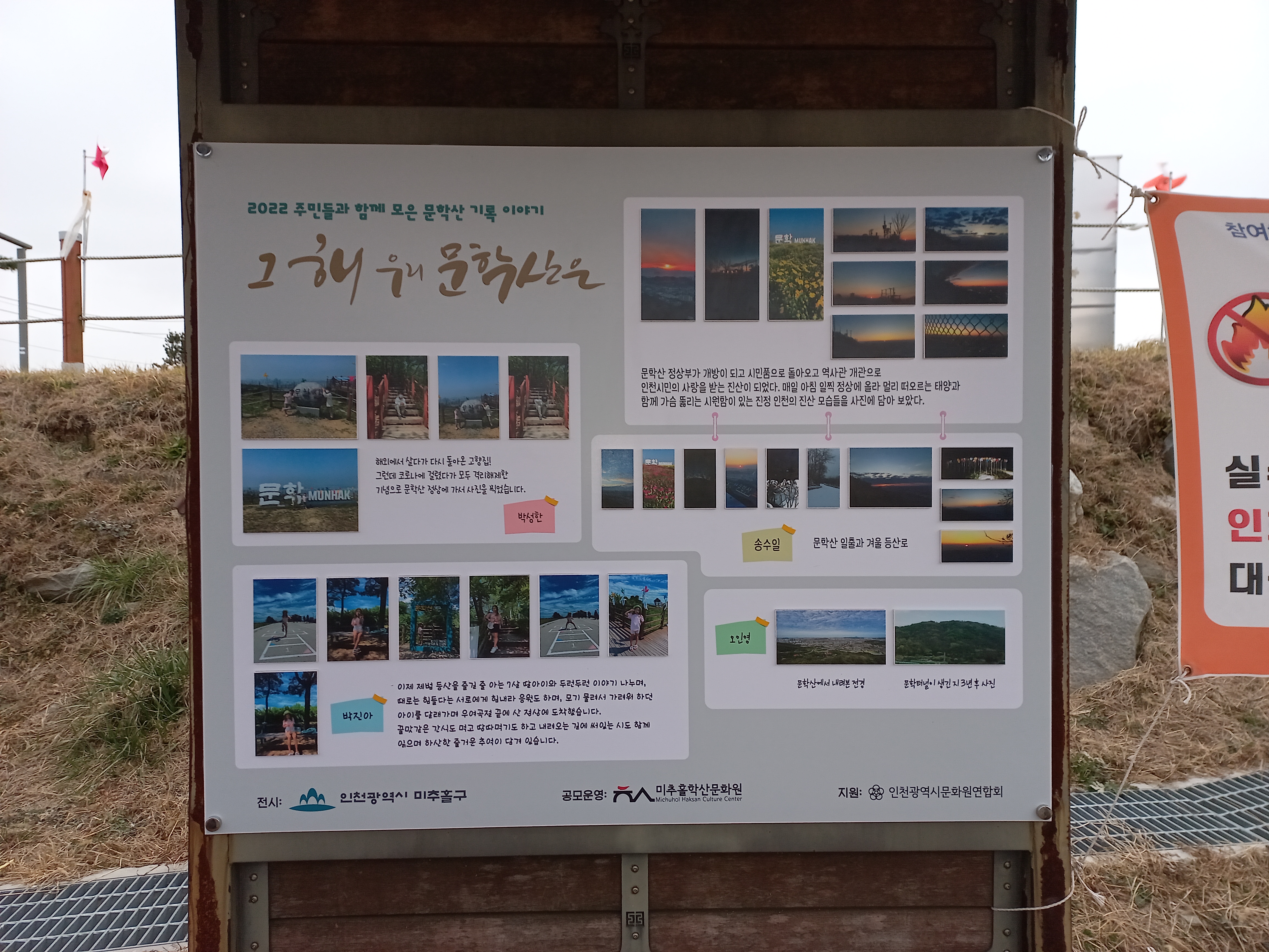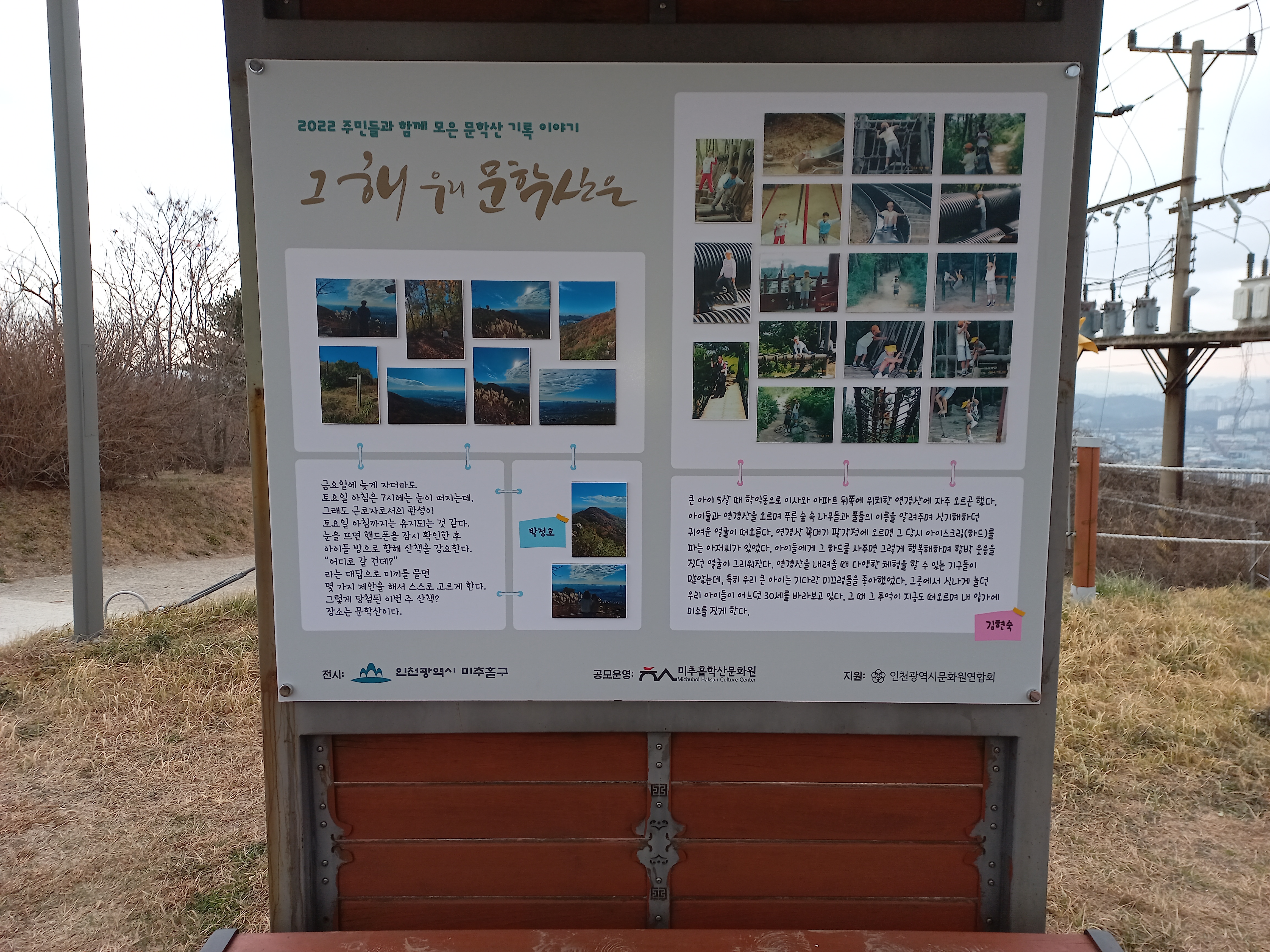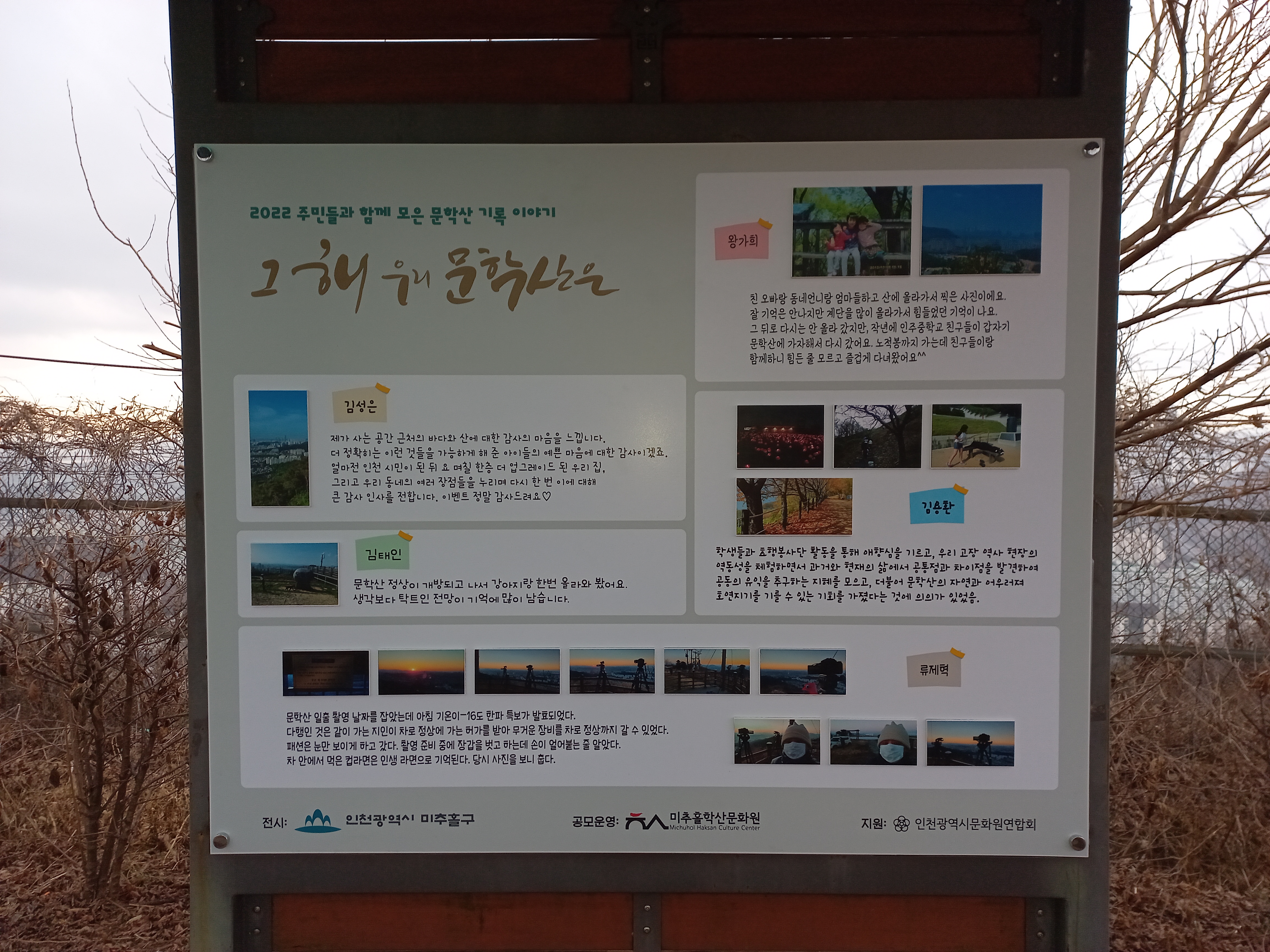 이렇게 수집된 귀중한 사진과 이야기들은 미추홀구 문화유산과와 연계하여 문학산 정상에 전시를 진행하고 있습니다.