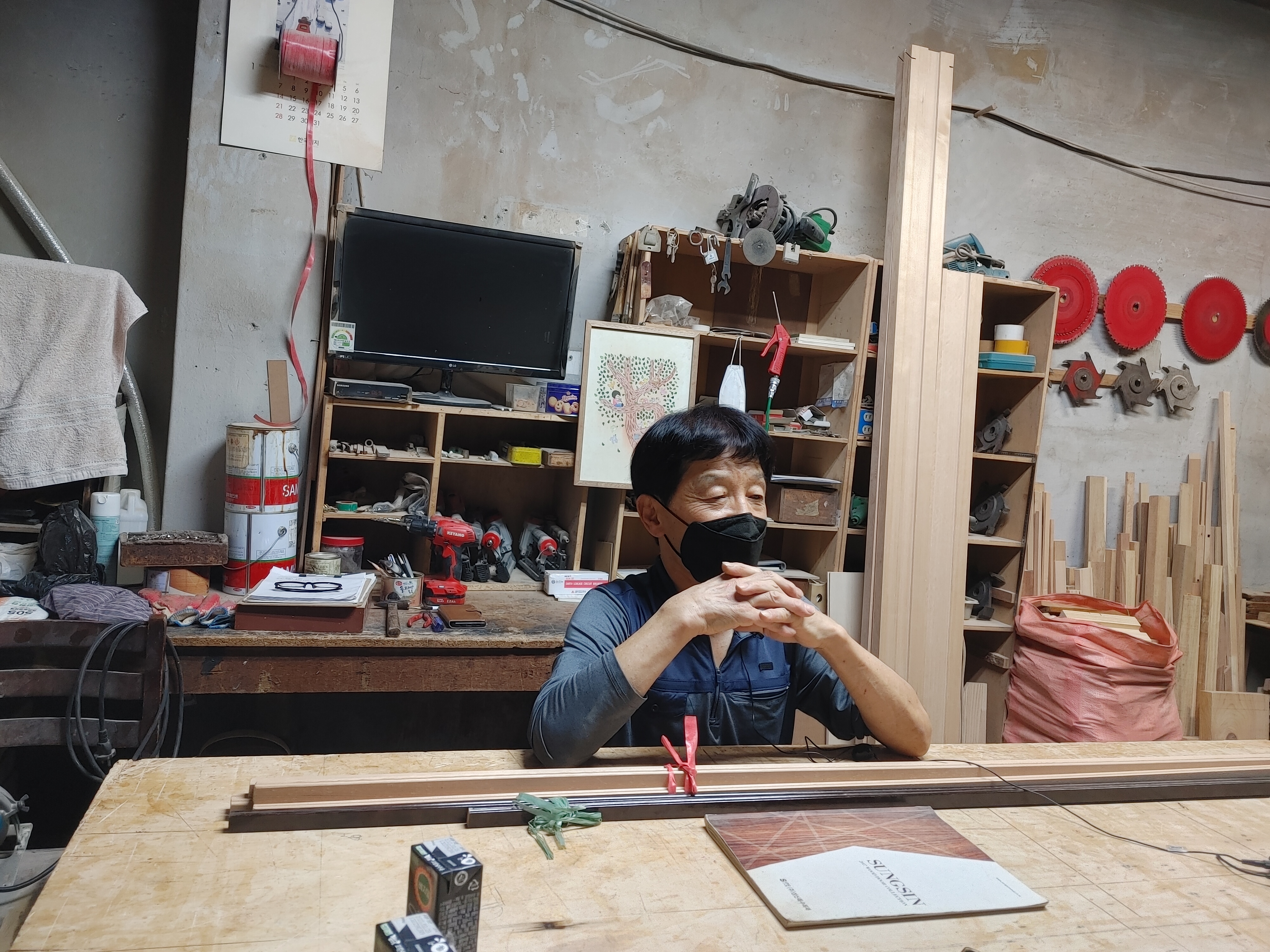 그때가 지금보다 훨씬 분위기가 좋았죠. 그때 도원동에 양쪽으로 목공소가 쫙 있을 때 문짝 같은 거 해서 팔고, 뭐 흔문도 팔고 사고 그랬어요. 분위기가 좋았을 당시에 지금처럼 이렇게 인터뷰를 할 수 있었다면 좋았을 텐데 아쉬워요. 미추홀구나 인천시에서 목공소가 자꾸 없어지니까 여기다가 숭의목공예마을로 만들어 준 것 같아요.