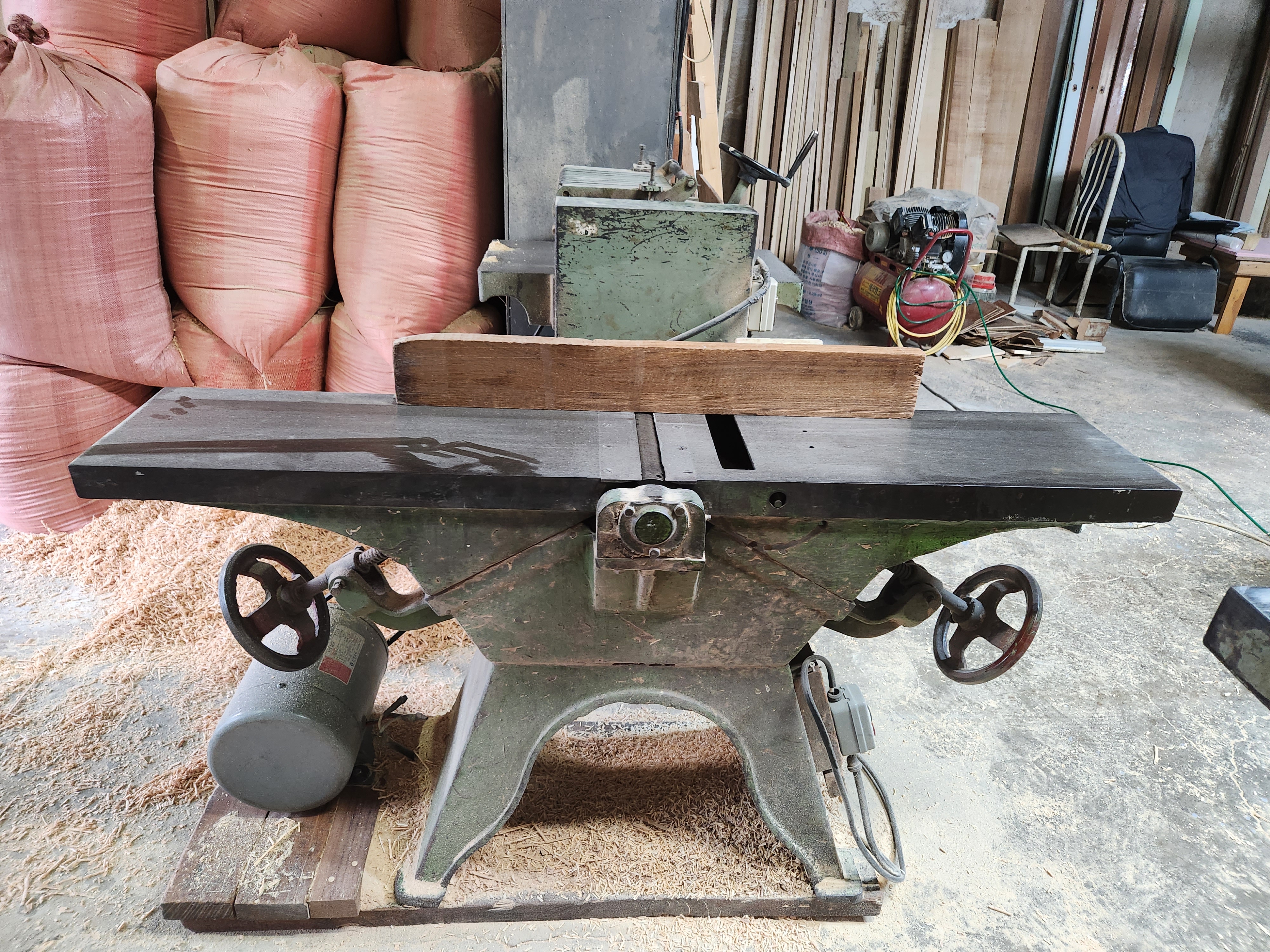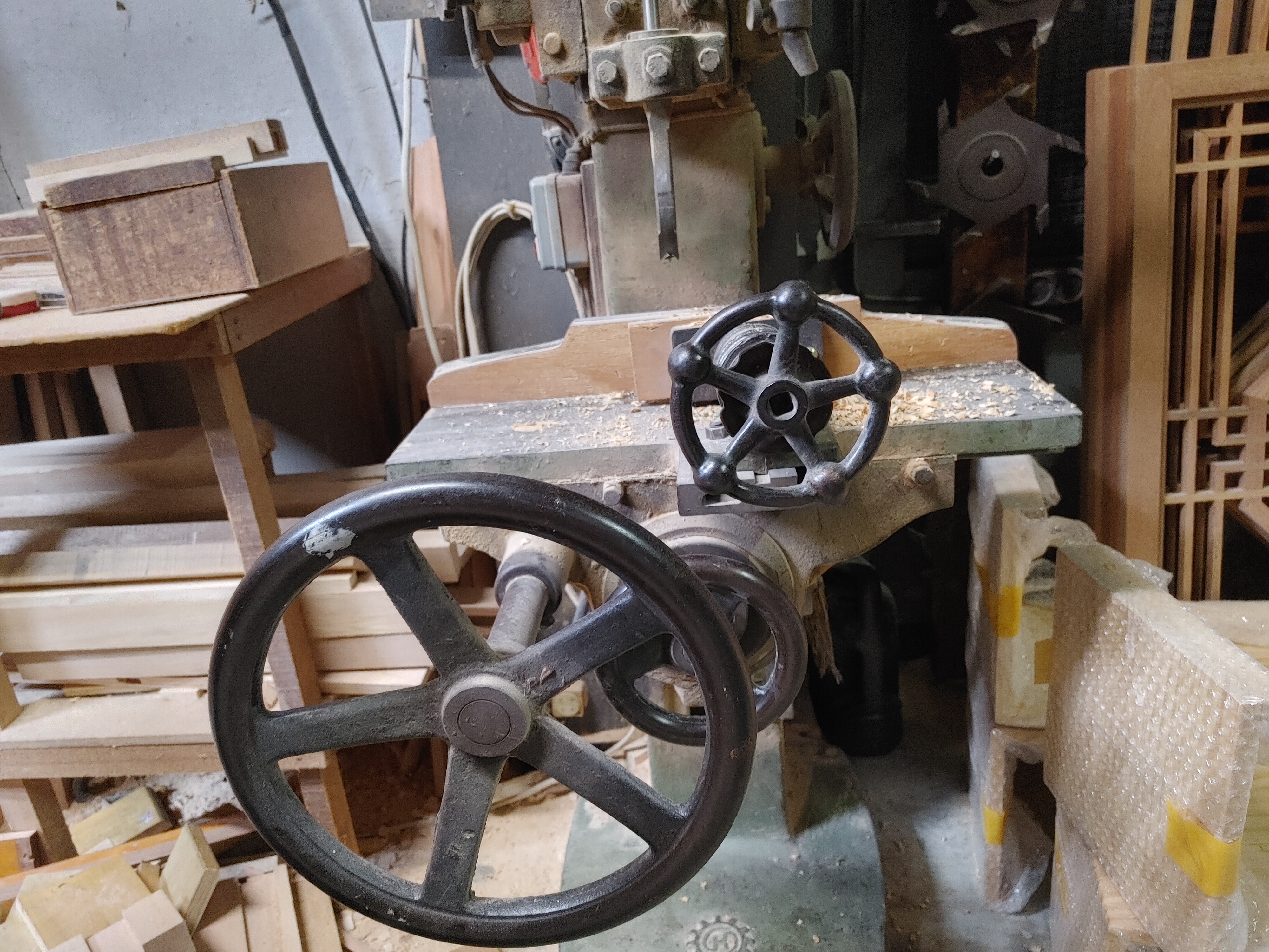 이거랑 저거랑(자동대패, 수동대패) 같이 사 왔는데 한성(상표)이든가 어디 붙었을지도 몰라요. 어딘가에 붙어 있을 거예요. 40년 지났지만 나 끝날 때까지는 쓸 거예요. 근데 진짜는 기계를 내가 써야지, 다른 사람은 쓰게 하면 안 돼. 쓰는 사람이 기계 저기 소리만 들어도 알아요. 기계 막 돌아갈 때 소리만 들어도 아! 뭐가 어디가 문제가 있구나! 그렇지!!! 여기 이상이 있구나. 그래서 다른 사람은 못 쓰는 거야. 만약 목공 하는 사람이 온다고 그래도 이건 빌려주면 안 돼요. 연장을 다루는 사람들은 마찬가지. 국산이어도 여태 고장 한 번 안 났고, 만약에 소리가 조금 이상하다 그러면 그리스 넣는 구멍이 있어요. 그걸로 해결됐었는데, 지금 저쪽 자동 대패라고 그러는 건 로라가 잘 안 굴러 가가지고 한 번 가서 고쳐온 적이 있어요. 문틀과 문짝 만들 때 이 4가지 기계는 꼭 있어야 해요.