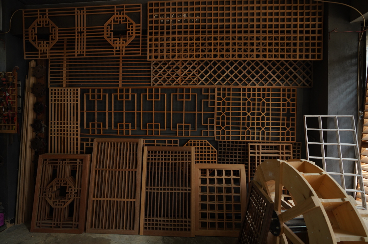 그때는 기계화가 없기 때문에 다 손으로 막 끌 구녕 파고 톱질하고 그랬어요. 저기 걸려 있는 것을 끌이라고 그러잖아요. 예전 문짝들은 지금처럼 이렇게 어렵지 않았어요. 그래도 하다 보니까 지금은 조금 하기 어려운 것도 하죠. 나만의 기술 같은 것도 좀 생기고(말끝을 흐리시며 쑥스러워하며 웃으심).