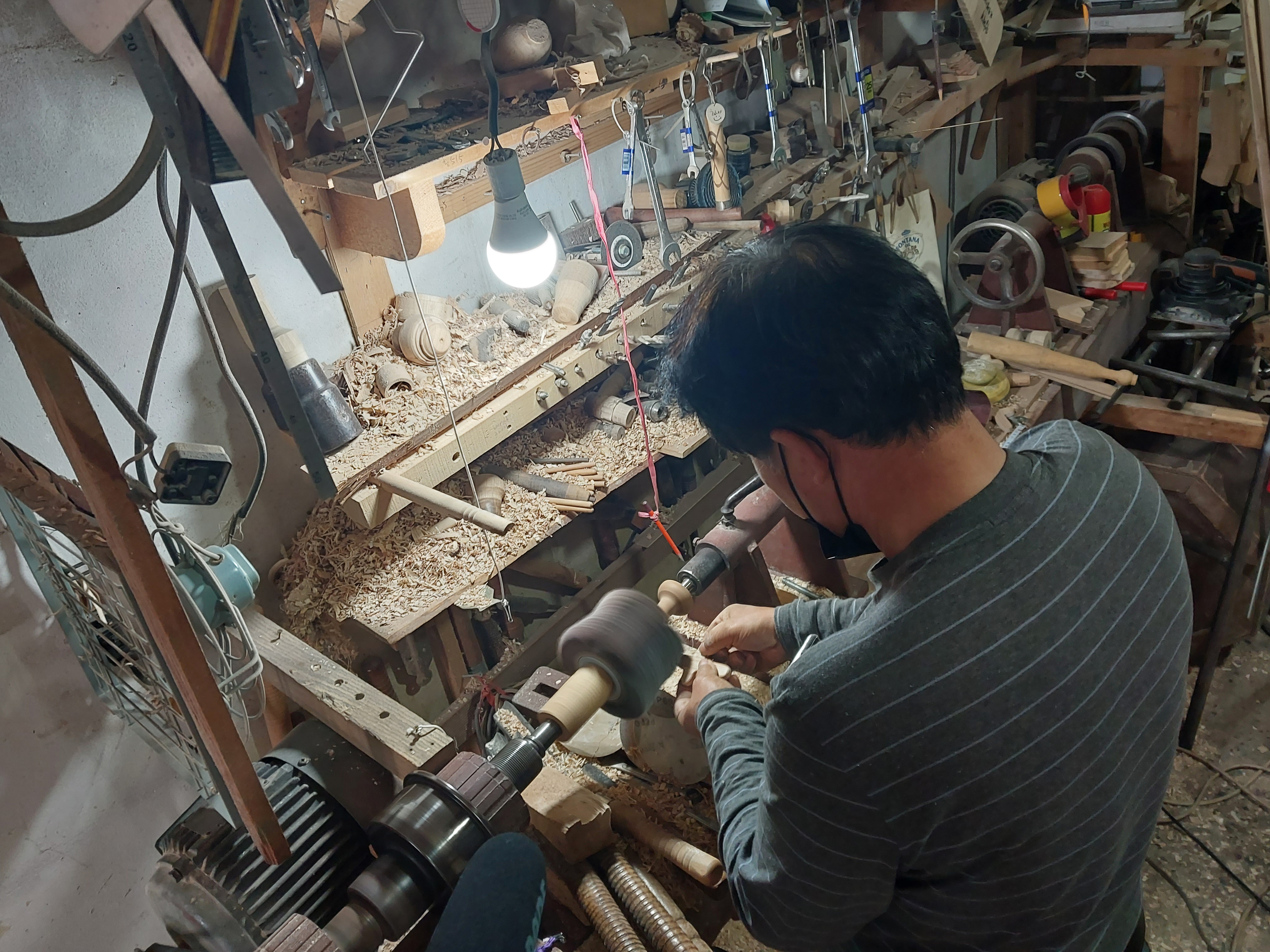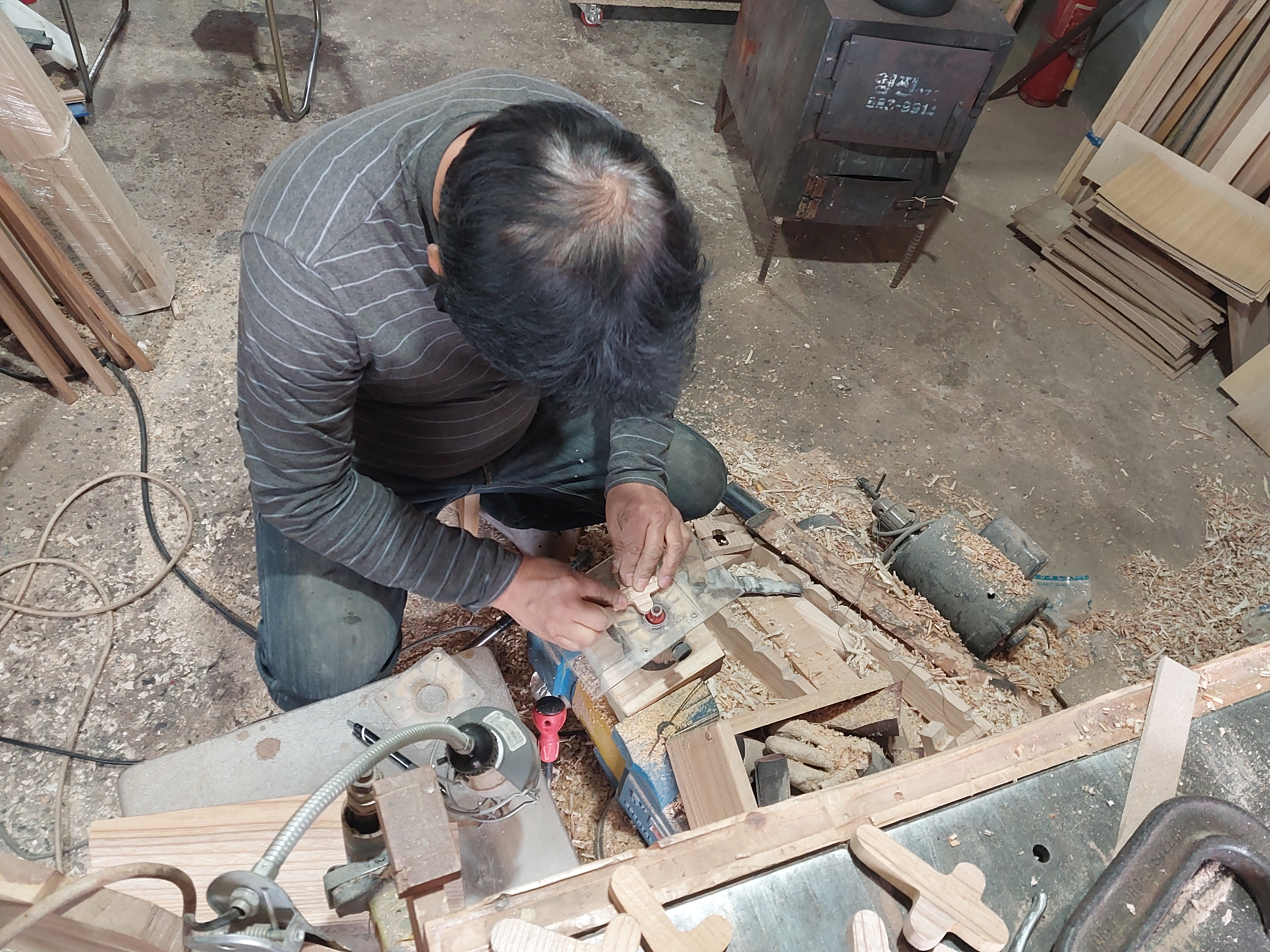 어렸을 때 접하다 보니까 나이 스무 살 때. 그때는 뭘 모르니까 학교도 다니다가 공백 기간도 있고 돈 벌고 그냥 용돈 벌 욕심에 목공 쪽 아르바이트를 했지. 들어가서 하루에 돈 천 원도 받고 그렇게 하다가 개인적인 얘기지만 가지 말았어야 되는데 가는 바람에 여기까지 오신 거죠. 발을 잘못 담가서. 가지 말았어야 되는데. 어느 순간에 제가 나이가 조금 먹다 보니까 지금 같아서는 괜찮다 이거죠. 이제 지금 생각해보면 내가 나무가 좋으니까 지금은 괜찮고 앞으로도 더 일을 할 수 있으니 괜찮지. 또 이게 제가 이제 몸에 밴 일이고 할 수 있으니까 아주 좋은 선택이라고 봐요. 그런데 한편으로는 누구한테 권하고 싶지는 않아요. 힘드니까. 힘드는 건 사실 몸에도 좋은 건데 그마만큼 사실 그 문제가 있는 거라고. 수입이 처음에는 거의 없다고 보시면 돼요. 그러니 힘들고 저희는 운이 좀 많이 따라줬고 80년대에 경제 성장이 이루어지면서 일이 항상 넘쳤으니까. 이게 단가가 좋든 나쁘든 그걸 떠나서 하여튼 신발만 신으면 돈 벌었어요. 그때는 신발만 신으면 돈 벌었고 그렇게 이제 일을 많이 하고 그래서 좀 괜찮았죠. 운이 좀 좋은 상태죠. 근데 지금 시작하면은 또 물론 자기 아이템을 갖고 하면은 어떨지 몰라도 그냥 우리네들 하는 거 보고 나도 할 거야 이렇게 하면은 어렵다. 옛날에는 나무가 생활용품으로 많이 쓰였는데 지금은 플라스틱 산업에 밀리고 있고. 물론 플라스틱 쓸 사람은 쓰고 나무 쓸 사람은 나무 쓰는데 그만큼 시장성이 좀 좁죠.