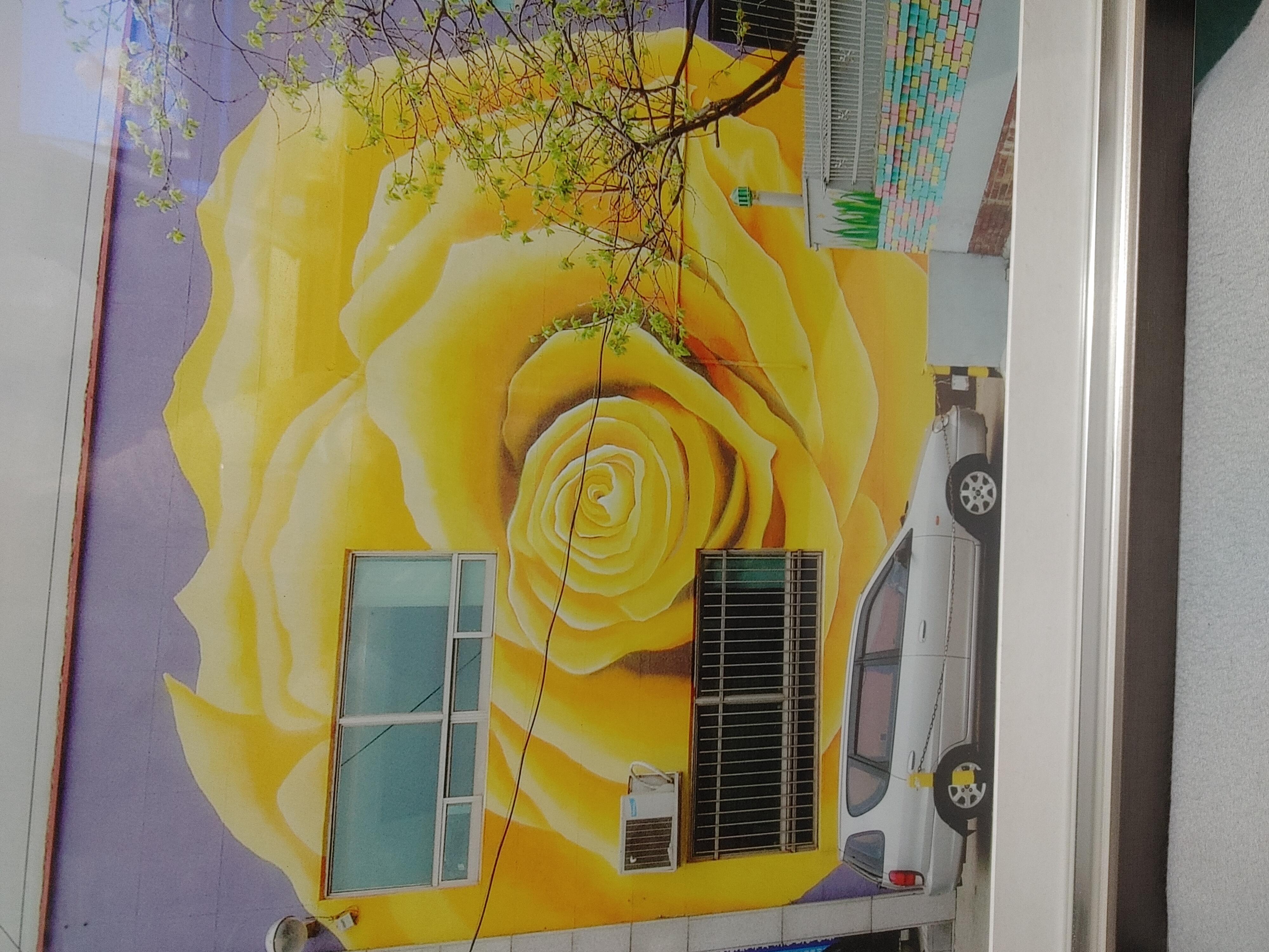 그동안 해오면서 항상 지루하지는 않았어요. 똑같은 그림을 그릴 때도 있어요. 왜냐하면 그때 그 그림을 보고 “그런 류의 그림을 그려주세요.”라고 그러면 할 때도 있지만 그건 많지는 않고요. 한 벽에서 이 벽으로 옮길 때는 이 벽에 맞는 게 들어오기 때문에 똑같을 수는 없어요. 예를 들어, 이쪽에 해바라기를 넣는데 여기다 똑같이 해바라기를 넣는다 해도 똑같은 구도의 해바라기가 들어오진 않아요. 이 장소에 맞는 다른 해바라기가. 그래서 그런지 몰라도 매번 할 때마다 신선하고 재미있어요.