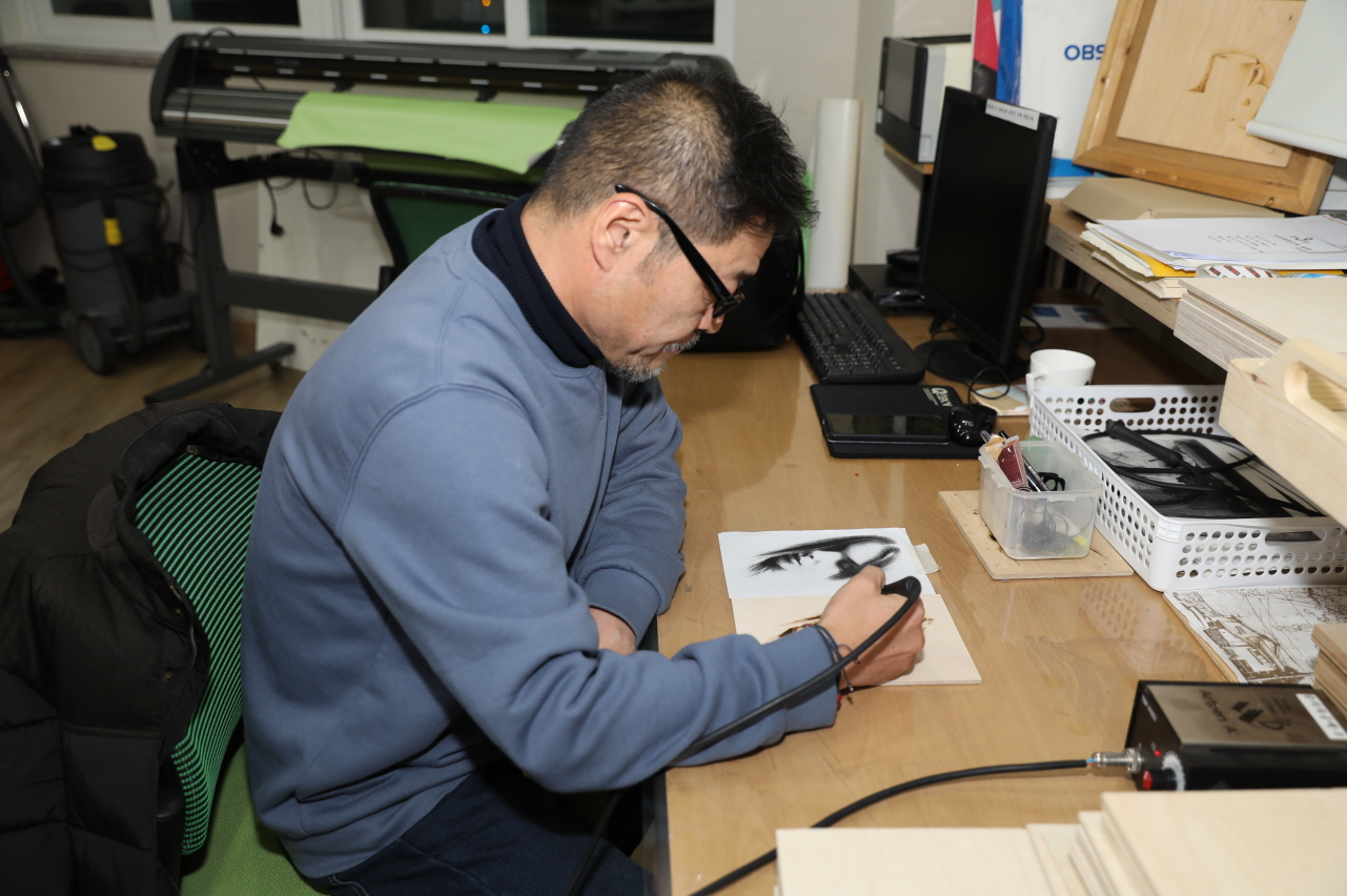 우각로 문화마을 시절 그때 목공예센터장을 만났고. 센터장도 부천에서 활동을 하다가 그걸 접고 전도관 안에다가 공방을 꾸민거예요. 저는 그림을 그리는 중에, 나무 그림 그리는 거를 좋아했어요. 그런데 마침 목공하는 친구를 만나니까 목공예에 관심을 갖게 됐죠. 그래서 그 친구랑 같이 협동조합도 만들어서 활동하다가, 그 전도관 ‘문화마을’이란 곳이 해체 위기에 와 있었고 그러는 와중에 여기 ‘창작 공방’이라는 공간이 생겼고. 그래서 그 당시에 평생학습관이 주관하고 있으니까 “프로그램을 만들어 보는 게 어떻겠냐.”라고 현 센터장이 제안한 게 ‘우드버닝’이라는 게 있었어서, “내가 모르는데 어떻게 시작하겠냐. 어느 정도 기술이 갖춰진 다음에 해보겠다”라고 해서 연습도 했고, 혼자서 거의 독학으로 공부를 했죠.