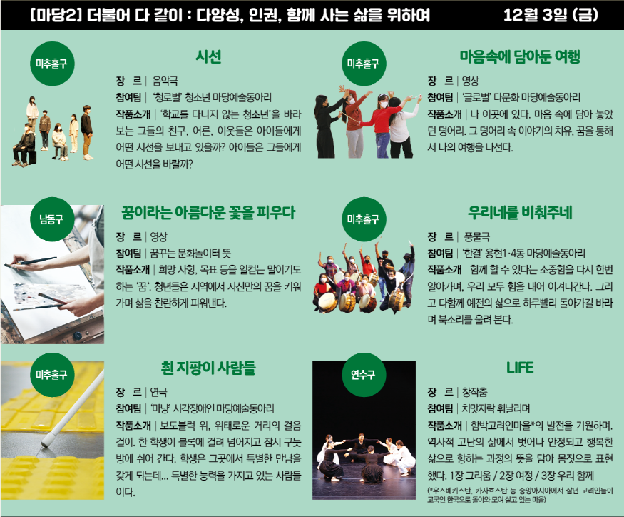 마당2. 더불어 다 같이 : 다양성, 인권, 함께 사는 삶을 위하여 12월 3일(금)