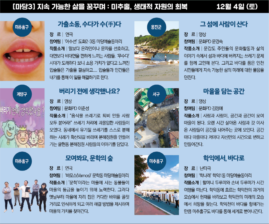 마당3. 지속 가능한 삶은 꿈꾸며 : 미추홀, 생태적 자원의 회복 12월 4일(토)
