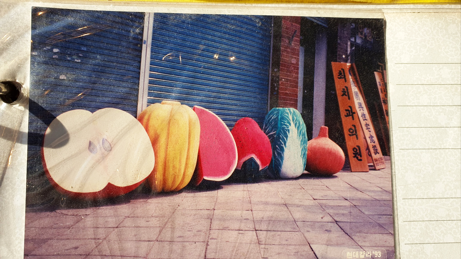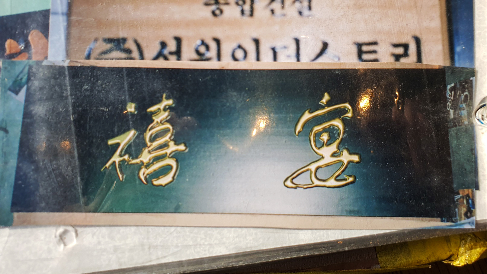 다 기억에 남고 제 작품은 다 애착이 가죠. 제 손길이 수십 번 아니 수백 번이 갔으니까요. 이 노트가 인일조각 포트폴리오지요. 이게 지금 신영 초등학교 교표 사진이에요. 전부 손으로 써서 하는 글씨죠. 학교 애들이 이 글씨체를 ‘진교체’로 하겠다 했어요. 여기 화엄정사라고 썼지요? 이게 컴퓨터에서 말하는 백송체라는 글씨거든요. 왜 내가 이 말씀을 드리냐 하면 이 글씨도 컴퓨터가 써놓은 글씨대로 하면 모양이 없어요. 그래서 내가 컴퓨터에서 배열을 해서 빼가지고 내가 손으로 전부 고쳐요. 내 마음에 들게 하려고요. 저는 컴퓨터로 글씨를 만들어도 제 손 글씨가 거의 한 40% 이상은 고쳐서 하고 있어요. 그리고 여기 보면 재미있는 ‘시옌’이라고 시청 옆에 가면 중국집 간판이거든요. 이것도 제가 만들었죠. 여기 사진 봐요. 길병원 재단 역사관을 만들 때 간판 내가 썼어, 내가 종이에다 써가지고 재단 측에 보냈더니 심의를 했나봐요. 목간판 하면은 ‘인일조각’ 아니면 누가 손을 못 댔어요. 글씨를 못 쓰니까. 그때 굉장히 보람이 있었죠. 컴퓨터 나오기 전의 이야기네요. 여기 보시면 사과, 참외, 수박, 딸기, 배추, 양파…. 내가 그린 거예요. 그러면 이게 왜 만들었냐면 우루과이라운드협정했을 때 인천시 농협에서 우리 농산물 이용하자 캠페인으로 만들었어요. 지금 이 목공의 일을 하다 보면 인테리어 현장에도 재밌는 장식들이 많이 들어가요. 목공예는 시대 발전하고 멀어진 게 지금은 실상이에요. 모양 하나만 뜨면은 수십 개고 수백 개고 만들어 내버리니까. 돈이면 다 되죠. 안타깝죠. 저기 저 등 뒤에 보시면은 저 복 복자 써 있는 거 있죠. 저게 분당에 가면은 1층부터 5층까지가 전관이 청요리집이 있어요. 왕푸징이라고. 근데 그 집 전관 인테리어의 조각품을 내가 다 만들었어요. 여기에 보면 그 왕포진 금판도 여기 있거든요. 그다음에 지금 이런 것은 여기서 이렇게 한 작품이거든요. 근데 여기가 비어 있죠. 엘리베이터 이게 누르는 그 칸이에요. 어느 건물주가 5층인가 몇 층에 자기가 당구장을 하면서 당구장 안내 표시를 1층 엘리베이터 이 표지판 누르는데 이걸 하나 해달라는 거예요. 이걸 씌워 가지고. 그리고 지금 이거 있잖아요. 이 ‘설화정’이라고. 이것도 제가 쓴 것인데요. 우리나라 이만섭 국회의장 계실 때에 강화에 인삼센터 가는데 산이 있어요. 그 산을 밀어 가지고 공무원 국회의원 연수원을 만들더라고요. 거기에 그 정자를 하나 졌는데 이만섭 씨 호가 이건가 봐요 ‘설화’ 그래가지고 설화정이라고 이걸 하나 만들어 달라고 해서 내가 강화에 국회의원 연수원 산까지 내가 제작해서 배달해 드린 적이 있어요. 이건 산림조합 중앙의 현관에 붙인다고 이 벽에서 저 벽까지 가는 크기거든요. 너무 커서 두 토막으로 찍었는데 그러니까 이 공예품을 하다 보면 특히 이 서각 계통의 이런 간판을 합니다. 이렇게 사진으로는 볼 수가 없으니까 지금도 이 앨범을 들춰보면 참 세상이 너무 변해버렸다는 것이 느껴져요.