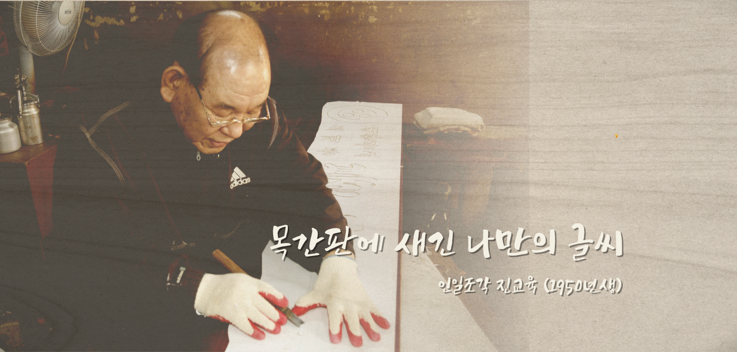 조각은 참 재미있습니다. 지금 이렇게 보면 내가 좋아하는 글이나 그림을 이렇게 수작업을 하면 이렇게 변해요. 그래서 이 조각이라는 것이 그 수많은 어떤 인간의 생각을 이렇게 표현해내는 거기 때문에 무에서 유를 창조한다고 할까요. 그래서 나무는 진짜 죽어 있는 거잖아요. 이게 죽어 있는 건데 여기다가 뭔가 내 솜씨가 가면은 새로운 어떤 그 작품이 되고 장식품이 되고 그런 경우죠. 그러니까 이 조각을 하다 보면은 굉장히 관찰력이 많이 늘어나요. 목간판을 만들면서도 모든 글씨를 내가 손으로 다 썼어요. 그걸 조각을 해서 그게 제품이 돼서 나가죠. 근데 컴퓨터가 나오면서부터 컴퓨터가 글씨를 써버려요. 컴퓨터로 인해 그러니까 그 기능이 없어지는 거죠. 지금도 아주 옛날 제 글씨로 해달라고 찾아오시는 분들이 있어요. 컴퓨터만 좀 늦게 나왔으면 우리 수작업자들이 할 일이 굉장히 많겠죠? 그러니 우리 같은 기능인은 컴퓨터 때문에 할 일이 적어졌어요. 왜 내가 이 말씀을 드리냐 하면 이 글씨도 컴퓨터가 써놓은 글씨대로 하면 모양이 없어요. 그러면 이 글씨를 내가 컴퓨터에서 배열을 해서 빼가지고 내가 손으로 전부 고쳐요. 내 마음에 들게 그래서 저는 컴퓨터로 글씨를 만들어도 제 손 글씨가 거의 한 40% 이상 고쳐서 하고 있습니다.
