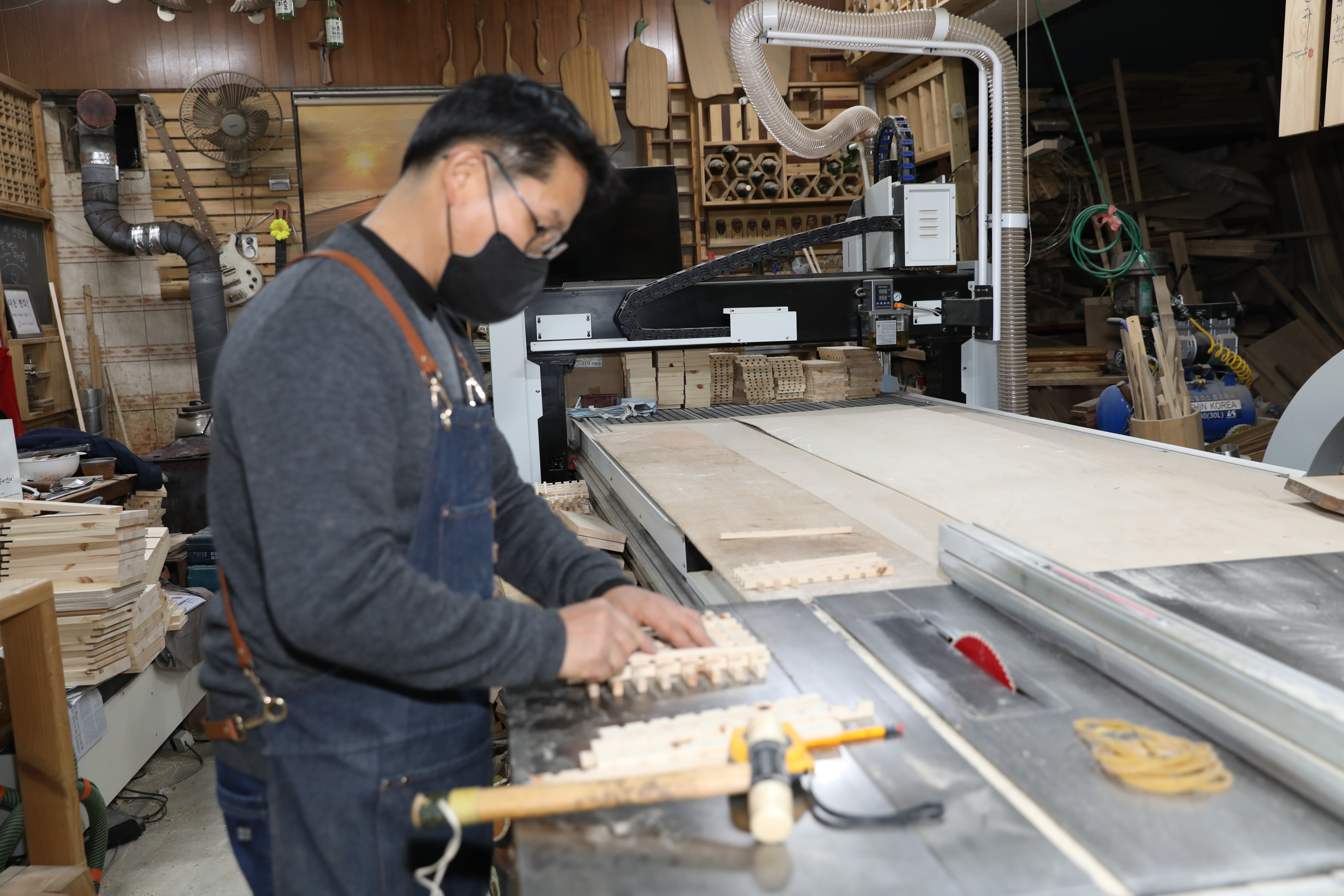 여기 목공예 거리에 있는 분들하고 비슷해요. 가구 주문받으면 제작하고 또 소품 같은 거. 저 같은 경우 인테리어 쪽도 좀 배워서 그쪽 일도 좀 하기도 하고. 그런데 이제 차후에는 지금 CNC라든가 그런 기계들이 있기 때문에 그런 거를 활용한 약간 전문적인 영역으로 만들어가려고요. 그러니까 이것저것 주문으로다가 만드는 방식이 아닌 제가 상품화를 해서 온라인이라든가 이런 쪽으로 하기 위한 발판을 삼으려고 하죠. 요즘 젊은 친구들이 이런 목공예거리 말고 개별적으로 일하면서 지금은 CNC 기계를 도입해서 사용해요.