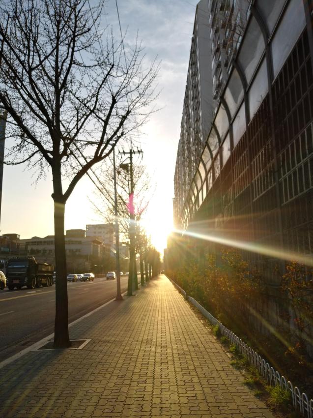 뒷산이 깍이고 흙을 나르는 덤프트럭이 다니던 먼지 가득한 야트막한 언덕길이다. 왼쪽으로 살짝 보이는 개울에서 장마때면 흘러 내려오던 모래들을 비를 맞으며 채취하던 모습을 어렴풋이 생각나는 곳이다. "