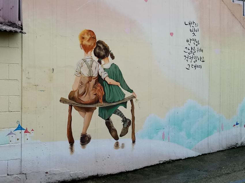" 30년 넘게 살았던 집의 사진입니다. 옥상 위에 옥수수밭을 가꾸기도 했습니다. 지나가는 사람들이 우리 집을 보고 이런 시내에 시골집이 있다고 하며 이야기하기도 했습니다. 벽면 벽화는 옛날 마을 사람들과 돈을 걷어서 벽화 선생님을 불러 초안을 잡아주시면 색칠을 했었습니다. 그게 시간이 지나 옅어지자 구청에서 다시 작업해준 벽화그림입니다. 이 벽화가 예뻐서 사진찍으러 사람들이 많이 오곤 했습니다. 2019년 재개발이 되기 전 마지막으로 집의 모습을 남기기도 하고, 윤종필 판화 선생님께서 집을 판화로 남겨주시기도 했습니다. 현재는 다시 볼 순 없지만 다시 살고싶은 우리집입니다. "