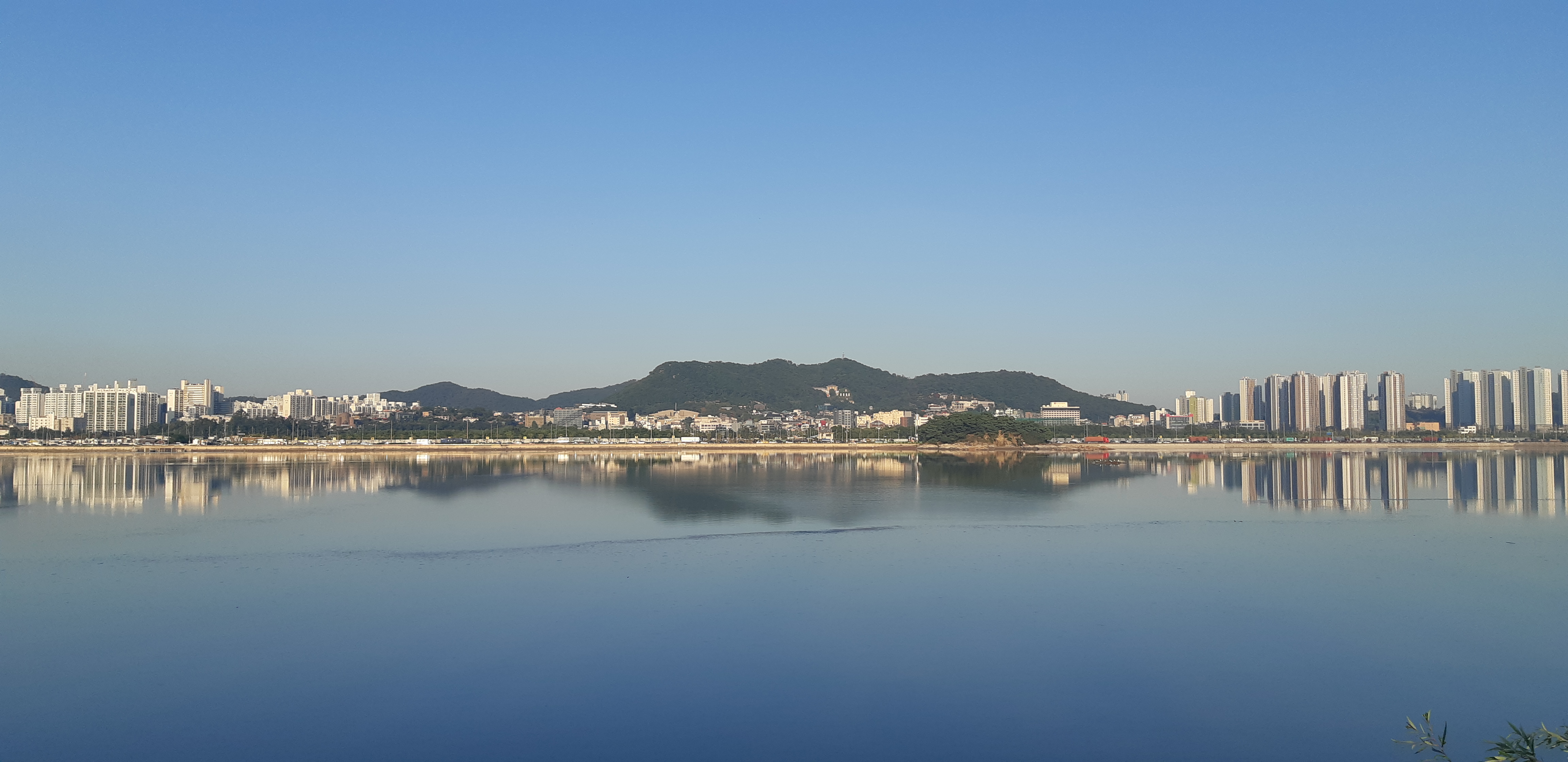 • 인천대교로 연결되는 다리 밑에서 청량산을 배경으로