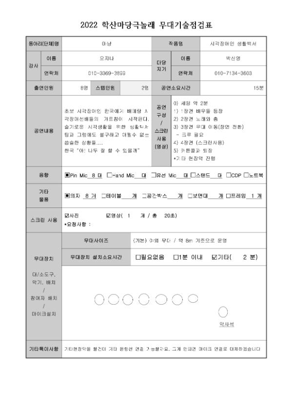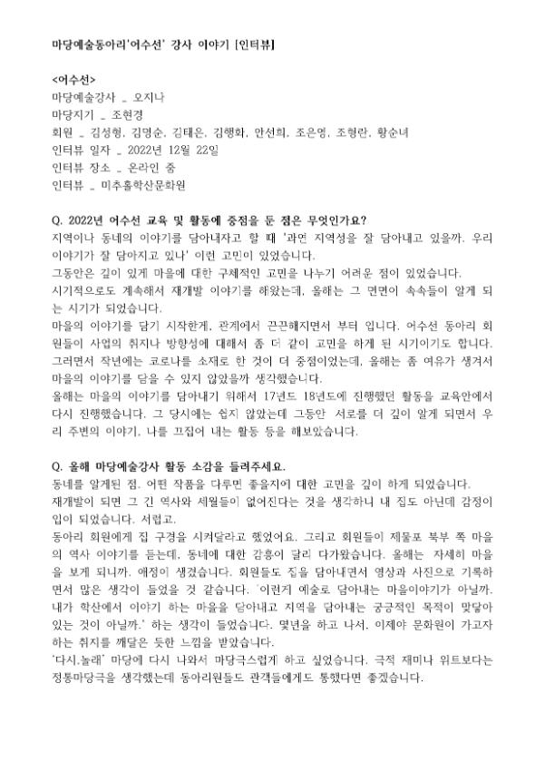 크고 작은 부침에도 좋은 결실을 맺어 주신 마당예술동아리 여러분들과