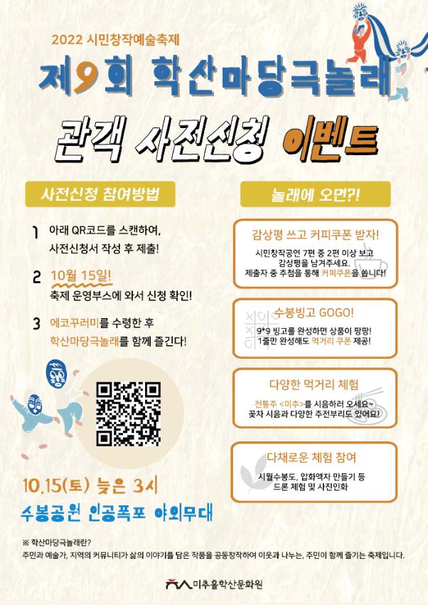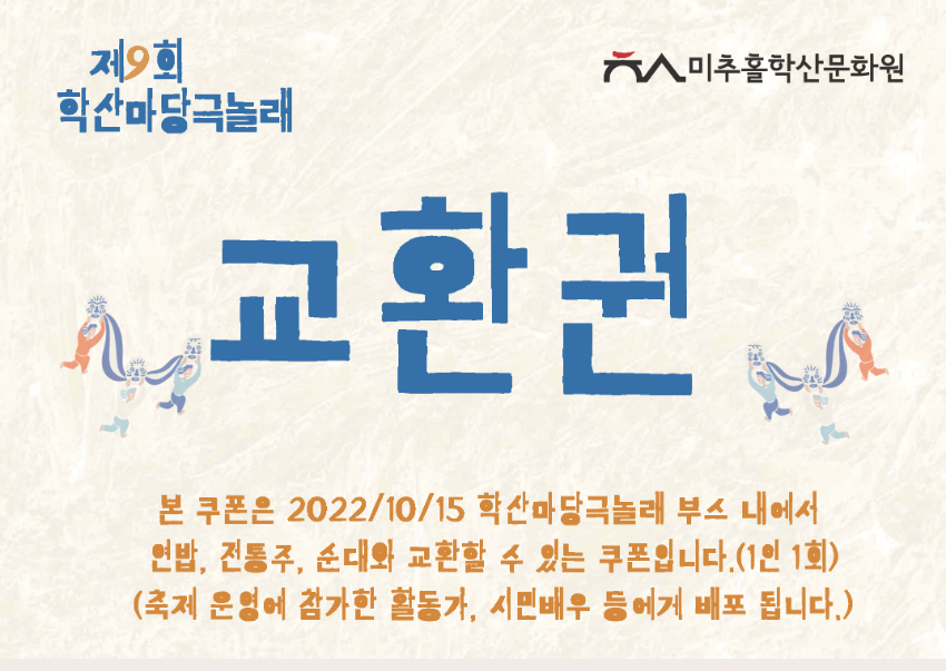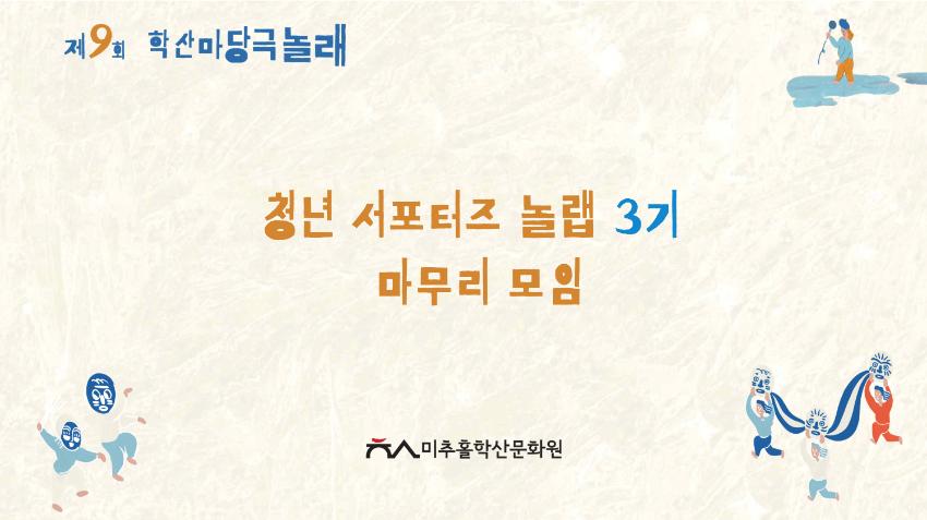 그동안 꾸준하게 학산마당극놀래를 지원해 주신 미추홀 구청과 연대와 협력의 가치로 함께해 주신 학익1동 행정복지센터와 주민자치회, 인천시각장애인복지관, 미추홀구 가족지원센터, 숭의목공예센터, 용일초등학교 등 지역의 많은 관계 기관과 단체들에 진심으로 감사드립니다.