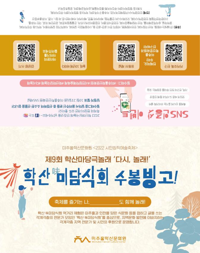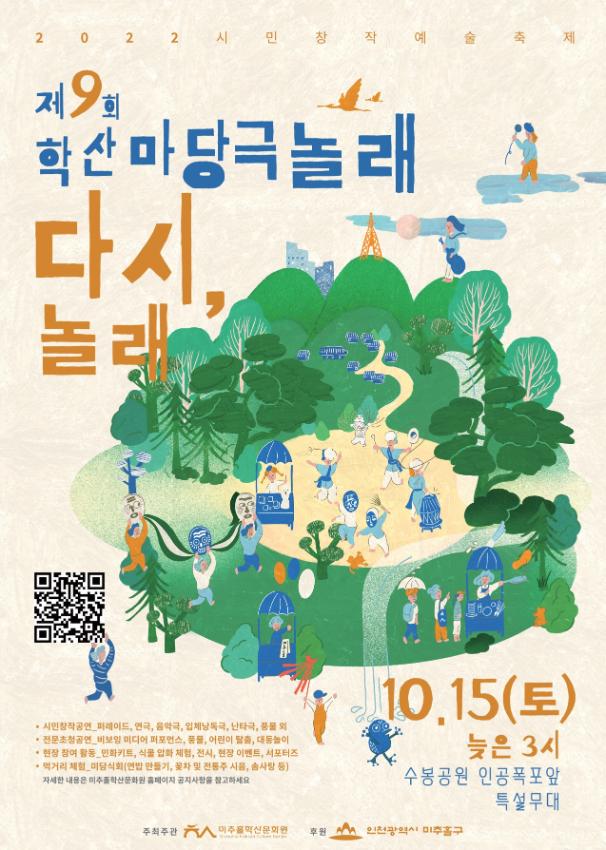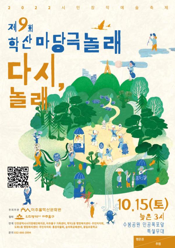 미추홀 주민들의 주체적이고 자발적인 참여로 만들어지는 '마당예술'이 해마다 새로운 시도와 변화를 모색하는 시민창작예술축제가 되도록 노력하겠습니다.