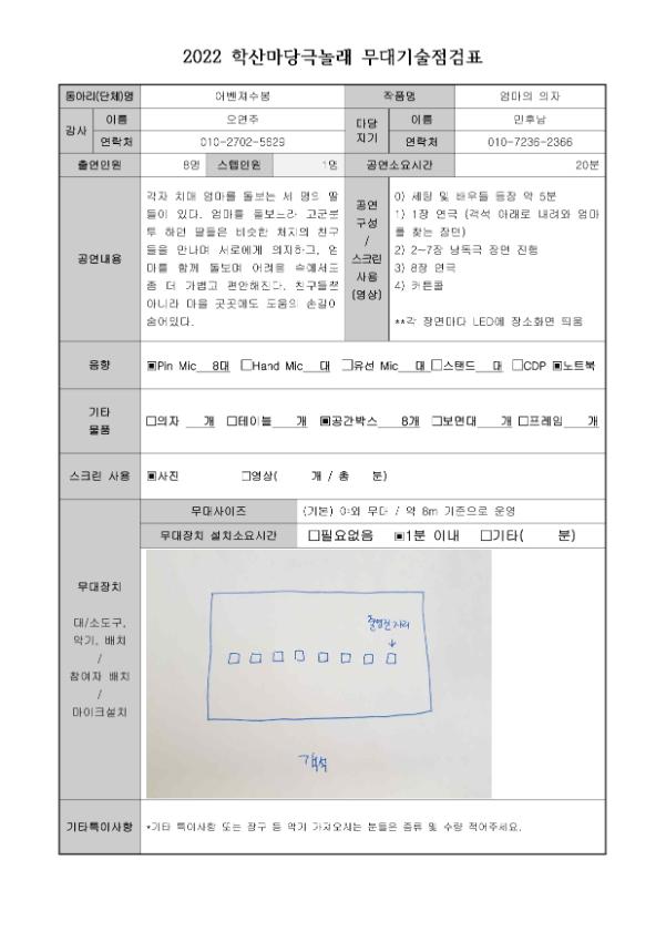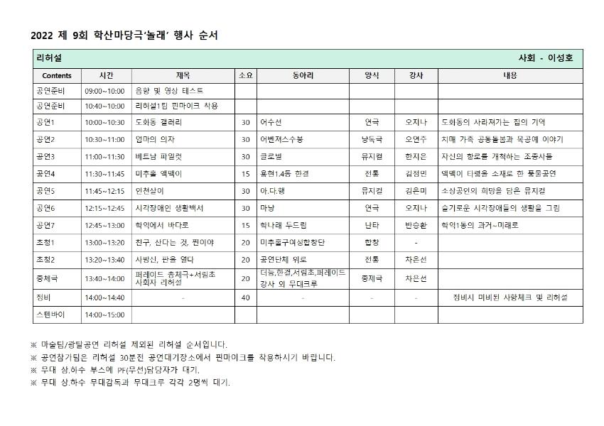 여는 마당 14:45 ~ 15:30 공연 마당 15:10 ~ 18:30