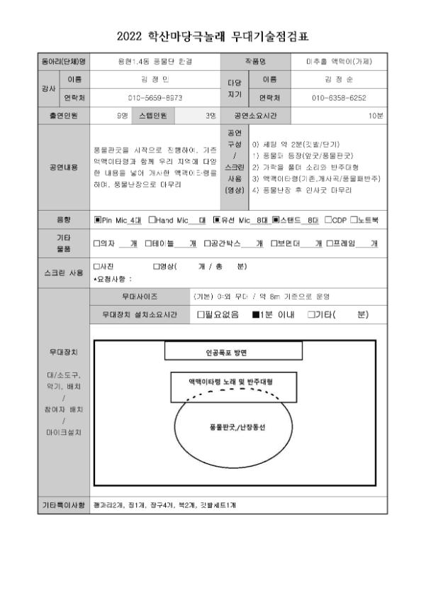 닫는 마당 18:30 ~ 19:30 ‘다시, 놀래!’ 함께 하는 대동놀이 및 감사장 수여초청공연 느낌커뮤니케이션 [광탈] 및 다함께 즐기는 대동놀이 |