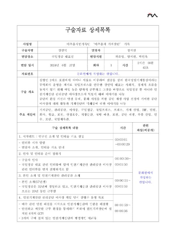 산업공단은 인천과 미추홀의 성장 동력을 이끌어낸 산업화 1세대의 산물임. 그 중 인천기계산단은 전국 유일의 기계산업단지로서 인천의 근현대를 담은 큰 자원이며 유산이기에 기록으로 남기고자 함.