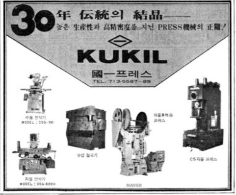 95년도에 국일 프레스를 인수, 합병하면서 상호를 ‘국일’이라는 이름은 그대로 하고 ‘프레스’를 ‘정공’으로 변경했어요. 품목은 프레스인데 상호만 국일정공으로 변경한 거죠. 정공은 정밀공작기계를 의미해요. 프레스라는 단어가 익스프레스(이삿짐센터)를 의미하는 것 같아서 듣기에 좀 그래서 정공이라는 말로 바꾼 거죠. 그리고 원래 프레스기는 스테핑 강한 힘으로 철판을 쾅 하고 찍어서 가공하는 방식