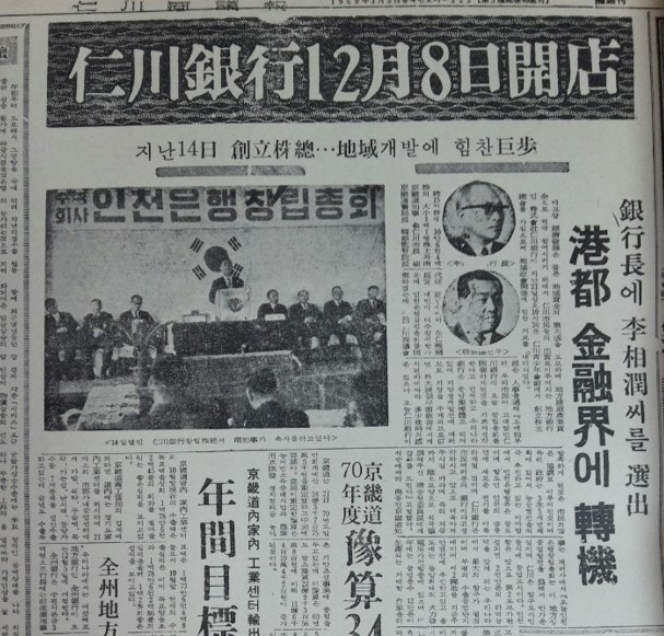 그러니까 예를 들어서 주택지에 있던 조그마한 공장들이 집단화 돼있는 공단에 입주를 하기 위해서는 이주비라든지, 시설 이전 비용 등 무엇보다 중소기업들이 자금 사정이 어려워가지고 힘들었을 겁니다. 상공회의소가 주도해가지고 69년 12월 8일 인천은행이 오픈을 했는데, 이 지방은행이 중소기업 자금을 대출을 해주고 지원을 했죠.