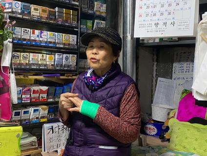 처음엔 아저씨 번 것 갖고는 삼 남매를 못 기르겠더라고. 우리 막내딸 5살 때 떼어놓고서 애는 혼자 집에 있고, 오빠들은 학교 가고. 1년 정도 직장 생활을 해가지고 돈 백만 원을 내 손에 쥐었어. 45년 전에. 그러고 그거 가지고 집을 샀어. 근데 집을 사려니까 복덕방 위에 저 파출소 옆에 사는 분이 “아줌마 집을 사서 뭐하냐!” 하는 거야. 자식들은 고만고만한데 월세 살았거든. 그러니까 집을 사지 말고 이 가게가 나서 이거 장사할 때 와서 봤어. 사실은 그랬는데 와서 봤는데 그렇더라고. 그러니까 삼 남매를 떼어놓고 1년 직장생활을 했어. 하다가 100만 원 보니까 좀 사람이 그래. 뭐라 그럴까? 아무것도 없다가 있으니까 진짜 부자 된 기분이더라고. 그래 아저씨하고는 안 사는 한이 있어도 난 자식을 못 버린다 해가지고 그때부터 고생 시작한 거예요. 그 당시에는 경북 슈퍼로 했어요. 왜냐하면 아저씨 고향이라 그랬더니 여기 오니깐 텃세가 말도 못 해. 깡패들이……