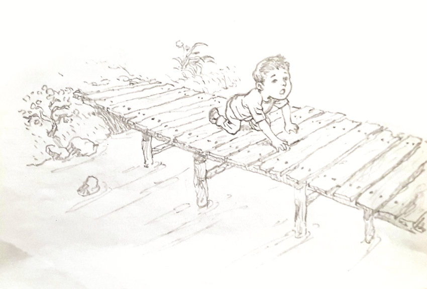 다리를 건너갔다고 하면, 물 위에 다리가 있었다는 건가요?