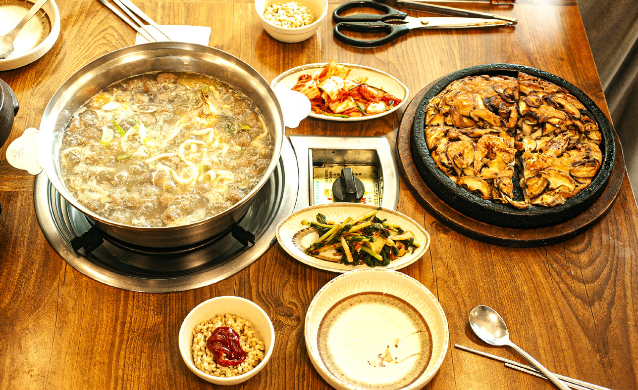 근데 저희 음식은 좀 강원도의 완전 전통식은 아니에요. 왜냐하면 강원도식 가서 보시면 육수에 바지락 이런 거 안 들어가고 옹심이가 보통 보면 그냥 일반 육수에다가 호박 썰어주고 그다음에 그냥 뭐 깨 뿌려주고 이 정도가 다입니다. 저는 옹심이집을 하다 보니까 강릉 가서도 먹어보고 속초도 가서도 먹어보고 유명한 데 같은 경우는 많이 가서 먹어봤어요. 어떻게 보면 이 도심으로 들어왔을 때 강원도 음식은 약간 심심한 것 같아 저는 오만둥이를 갈아 넣고 바지락을 넣기로 했죠. 약간의 자극적인 부분도 필요할 것 같고. 오만둥이도 처음에는 통으로 넣어보고 갈아서 넣어 보고 여러 가지 시도를 한 끝에 손님들이 시원하시다고 해서 그리하고 있어요.