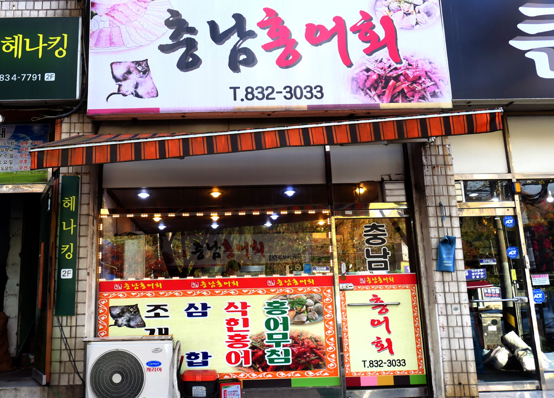 그러시구나. 저도 찾는데 솔직히 많이 애 먹었어요. 여기저기 찾아보기도 하고, 인터넷으로 검색을 했는데 그래도 다행히 ‘충남홍어집’이 있더라고요. 지금은 홍어무침 하는 식당들이 많잖아요. 어디를 가나.