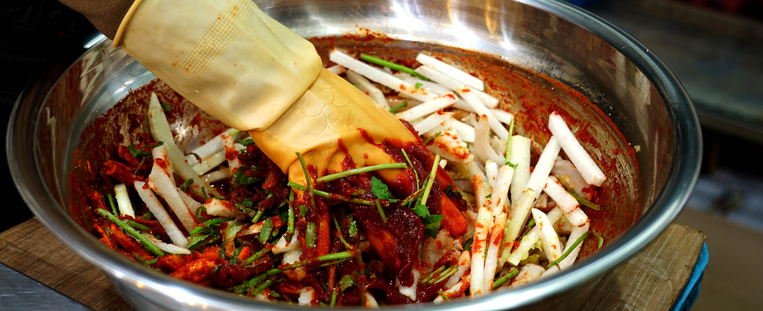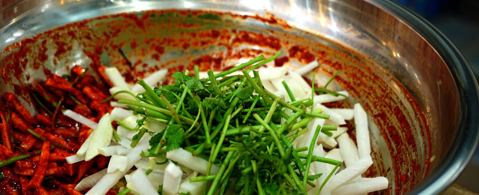 미나리, 무 등이 들어가요.