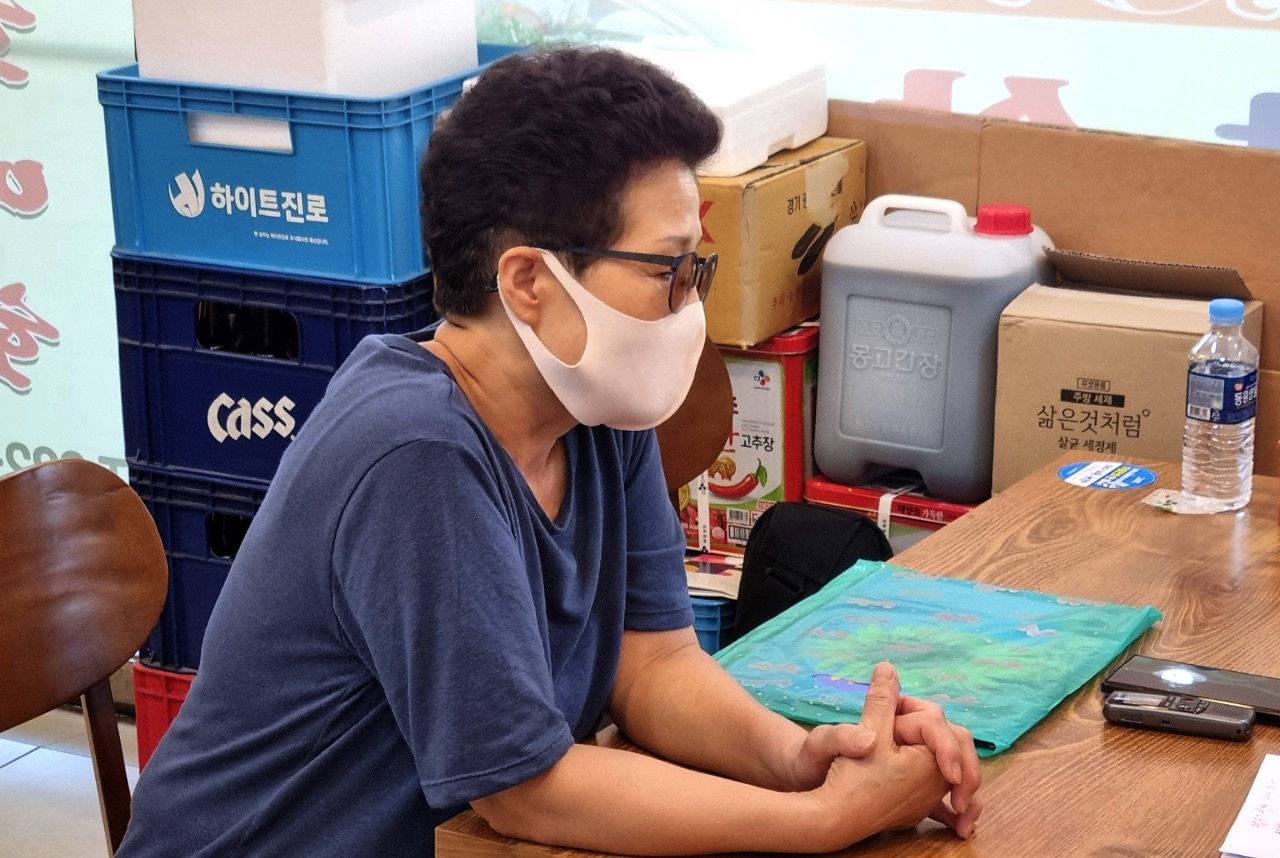 저희는 그래도 이거 잡숫는 분도 많이 계셔서 포장을 많이 해 갑니다. 무침도 포장해 가고, 삭힌 것도 포장해 가고 포장을 좀 하니까 그럭저럭 좀 지내고 있어요.