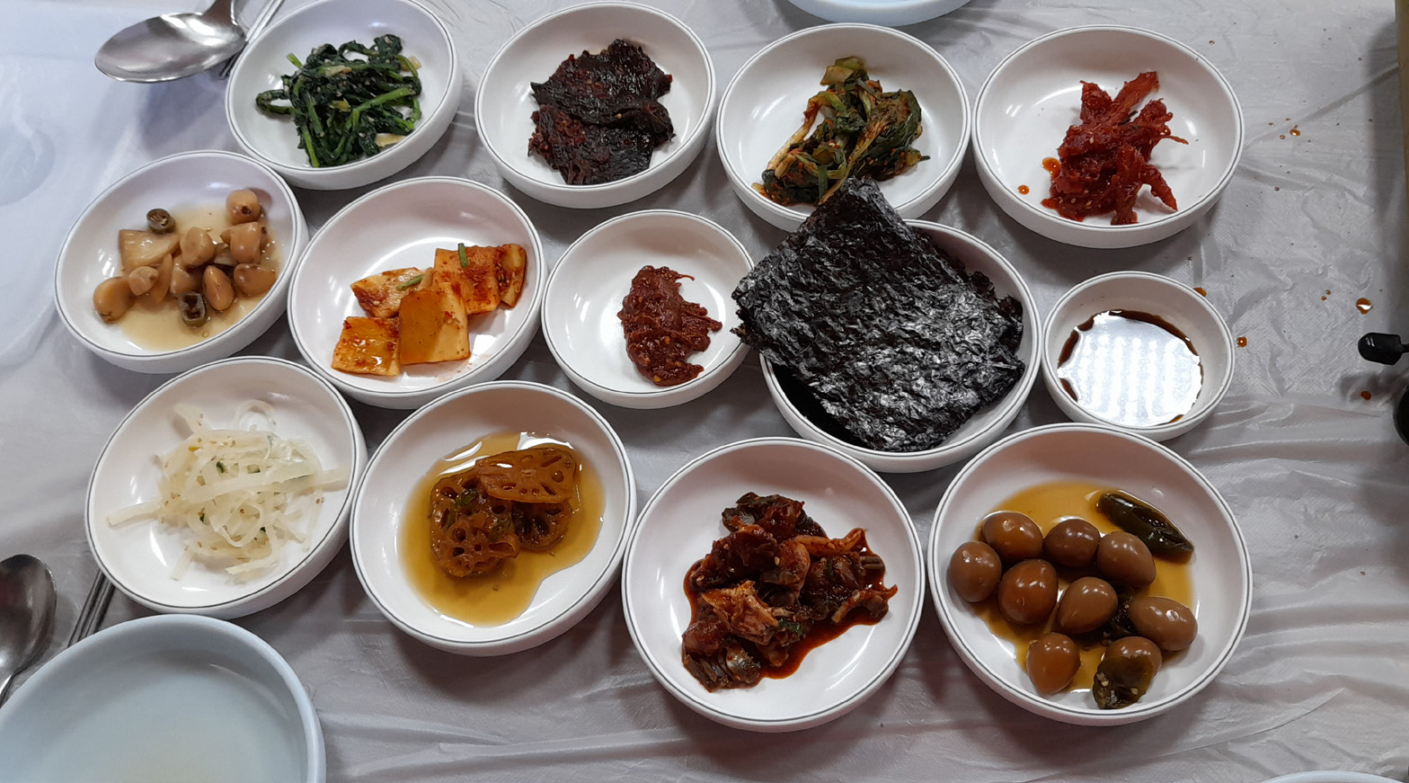 반찬은 처음에는 6~7가지 이렇게 하다가 손님들이 잘 자시니까 신경 써서 늘리다 보니 지금 12가지까지 됐어요. 김치나 장아찌류들은 저장 식품이라 한 번 만들면 오래도록 반찬으로 낼 수 있긴 하지만 나물이나 다른 밑반찬들은 매번 신경 써서 날마다 다르게 내죠.