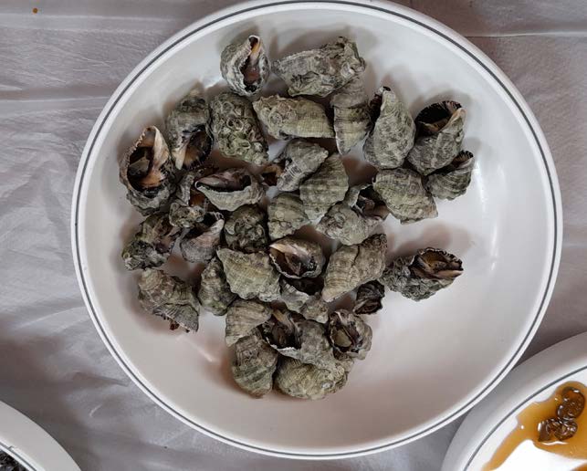 (장경엽) 계절별로 달라지는 건데. 제철 음식 있잖아요. 봄 같은 때는 나물 종류가 있죠. 내가 잡아다가 많이 쓰는 편이야. 나물도 봄 되면은 냉이 같은 거 캐서 만들고. 여기 보면 알겠지만, 바다 나가려고 호미를 많이 준비해 놨잖아요. 인터뷰하러 오셨는데 주방에서 못 나간 이유가 고동(갱)이 건조돼 버리면 안 빠져요. 그래서 내가 얼른 까야 되니까. 이런 거 잡아 와 가지고 쓰다 보면 사실 이런 고생 안 해도 뭐 마트 같은 데 가면 수입 고동도 있고 우렁이도 있고 막 그러잖아요. 그런 거 사용할 수 있어요. 그런데 내가 싫으니까 어쩔 수 없어요.