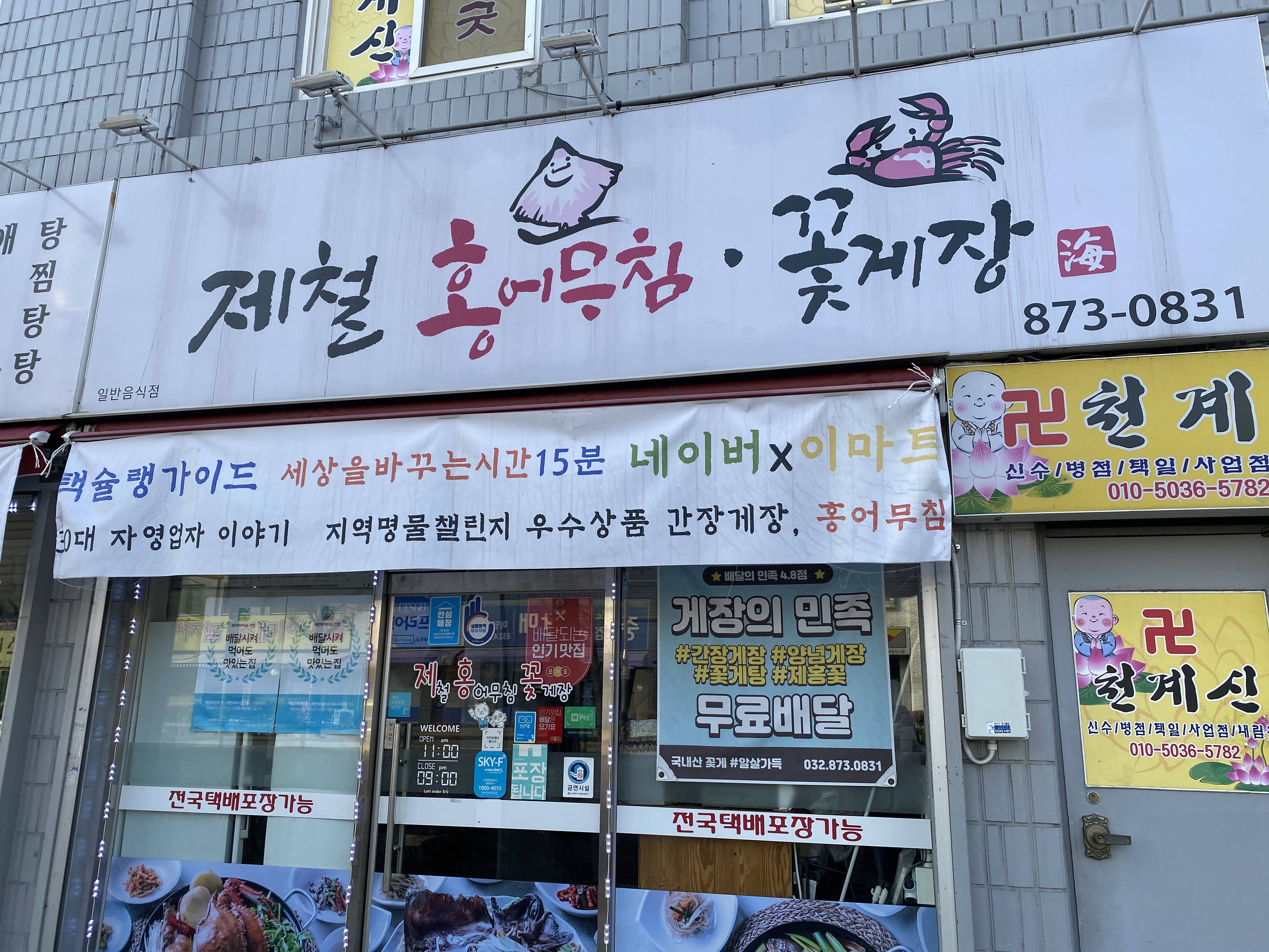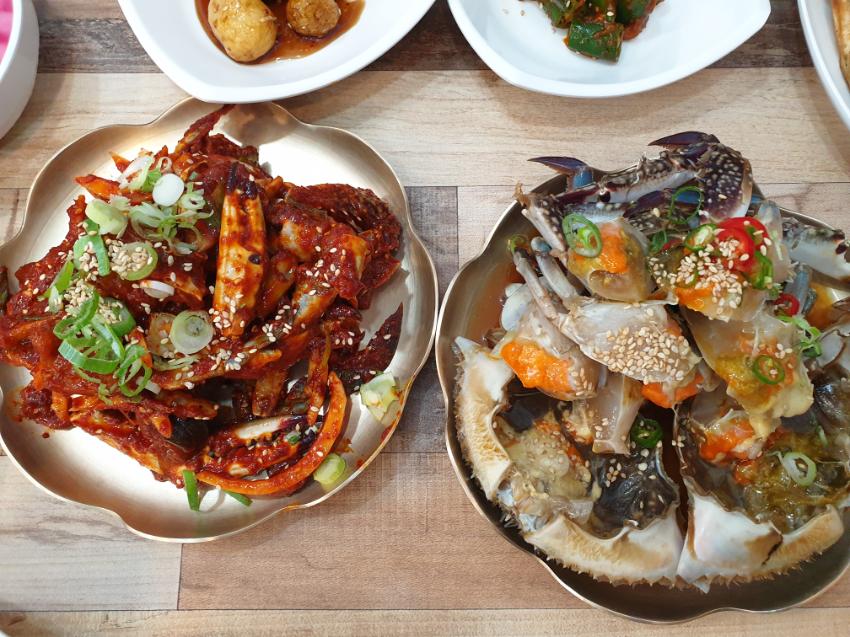 다른 데에서는 식당 경험이 없으니까 다른 일 좀 하다가, 어머님이 원래는 포장마차도 하시고 여러 가지 장사를 하셨어요. 그중에 홍탁 선어 집을 하셨는데 삼합 집 같은 경우에는 홍어의 톡 쏘는 암모니아 향 때문에 거부감이 있을 수 있으니까 삭히지 않은 것만 한번 해보라 해서 제가 전수 받았고, 그때 경력을 살려서 간장게장이나 양념게장 같은 거는 제가 레시피 개발을 한 거죠.