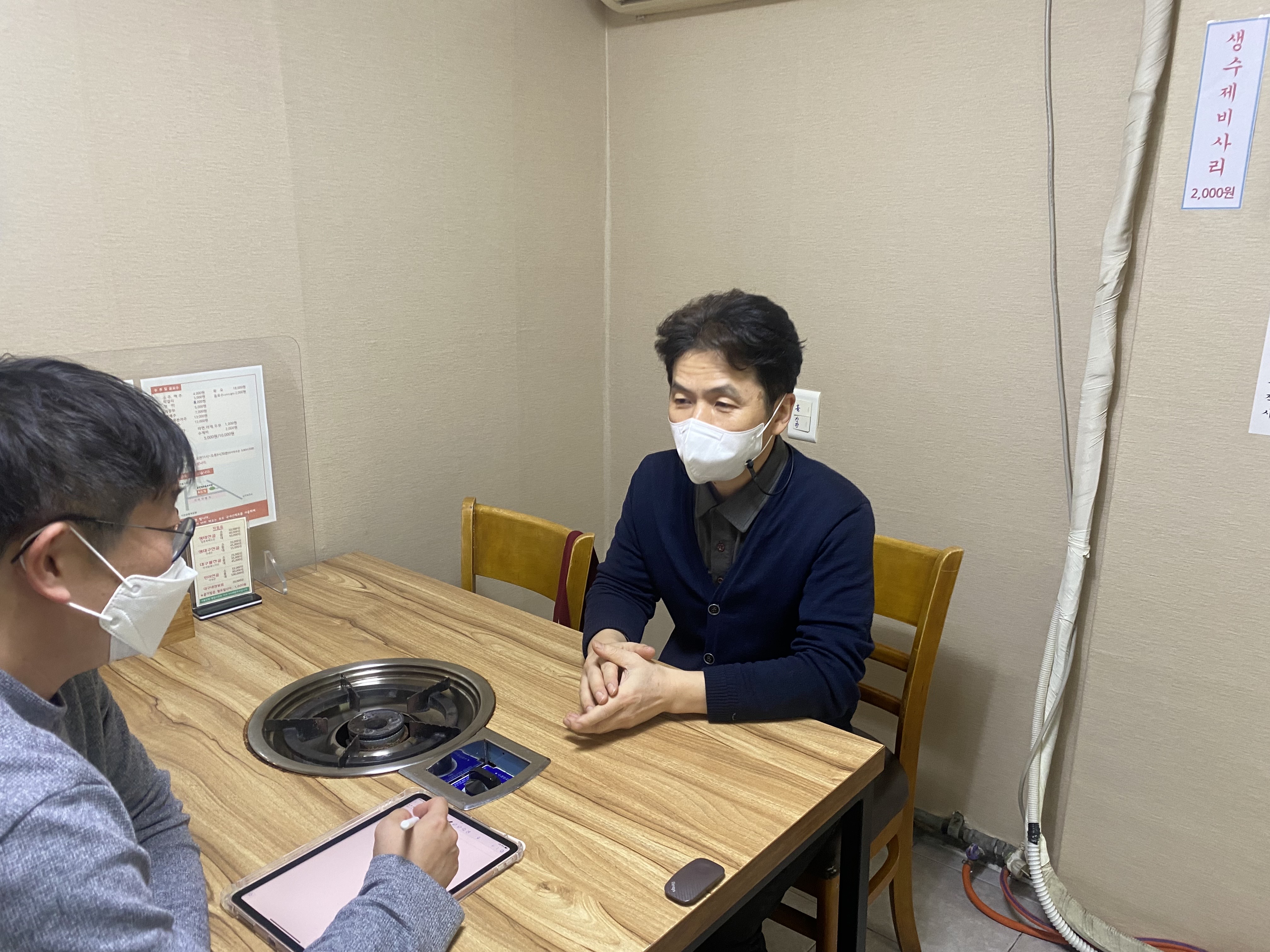 가게를 와보시면 처음에 입구의 간판이 달려있는 가게가 그때 당시에 워낙 안 나가던 가게 자리여서 아는 분 소개로 얻어서 임대로 7~8년 정도 잠깐 쓰다가 그 건물을 샀어요. 근데 이 자리랑 옆자리에 주택이 작은 게 있었는데, 그걸 사서 한 10여 년 정도 잠깐 쓰다가 건물을 올렸는데 그때는 다 식당으로 쓰지는 못하고 다 임대 줬다가 한 칸 한 칸씩 넓혀간 거죠. 그래서 식당에 손님들이 오시면 요즘 식당하고 달리 구조가 독특하죠.