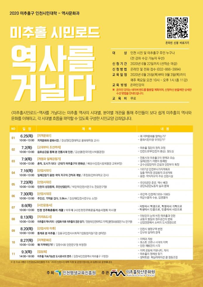 -교육내용 : 미추홀 역사의 시대별, 분야별 개관을 통해 지역의 문화를 이해할 수 있는 시민교양 강좌