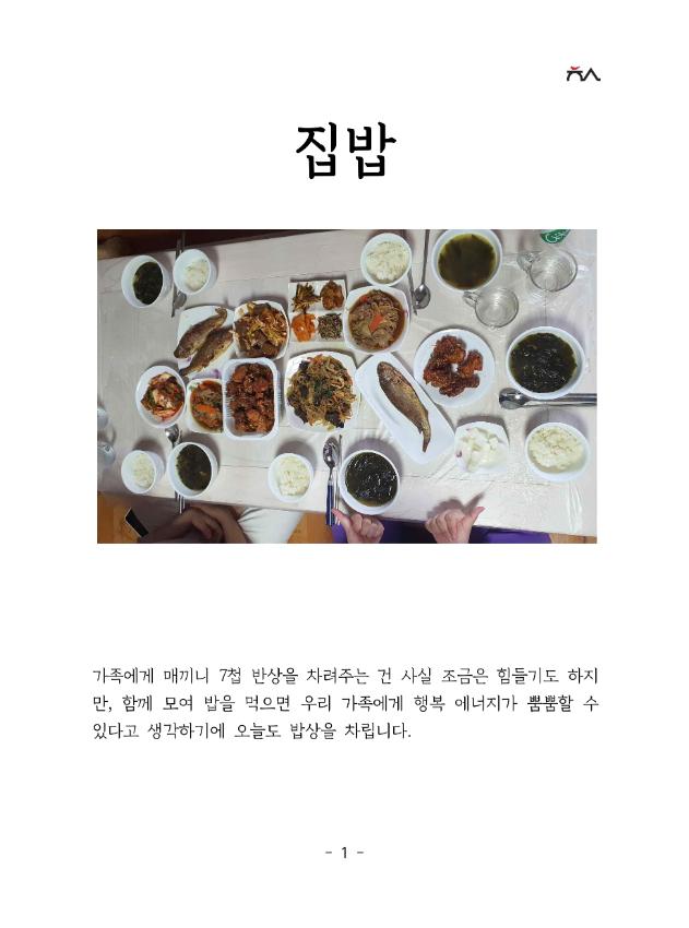 • 주     제: 미추홀 시민의 음식 중 밥과 반찬-집밥(가정식)